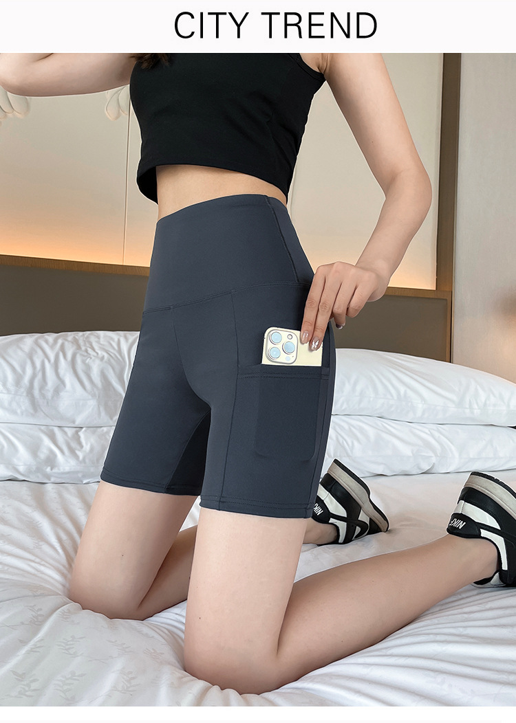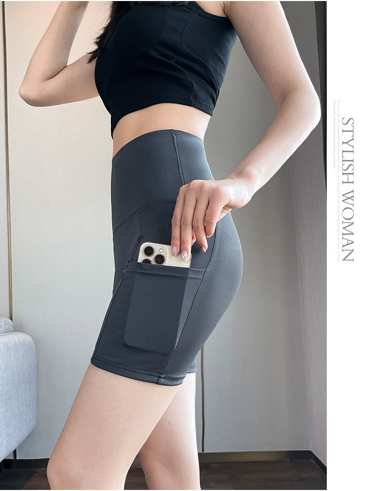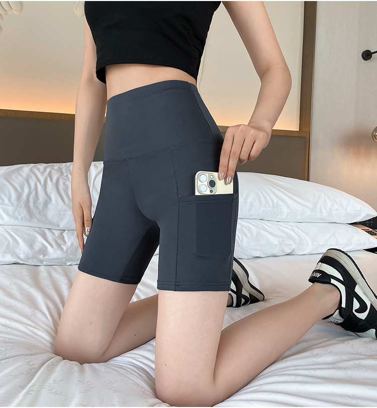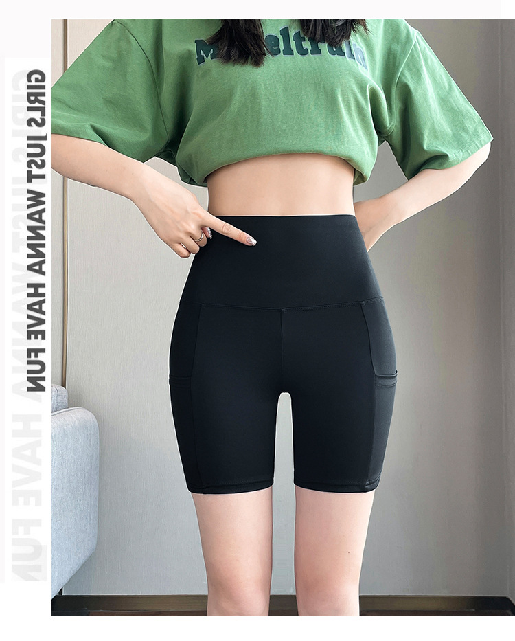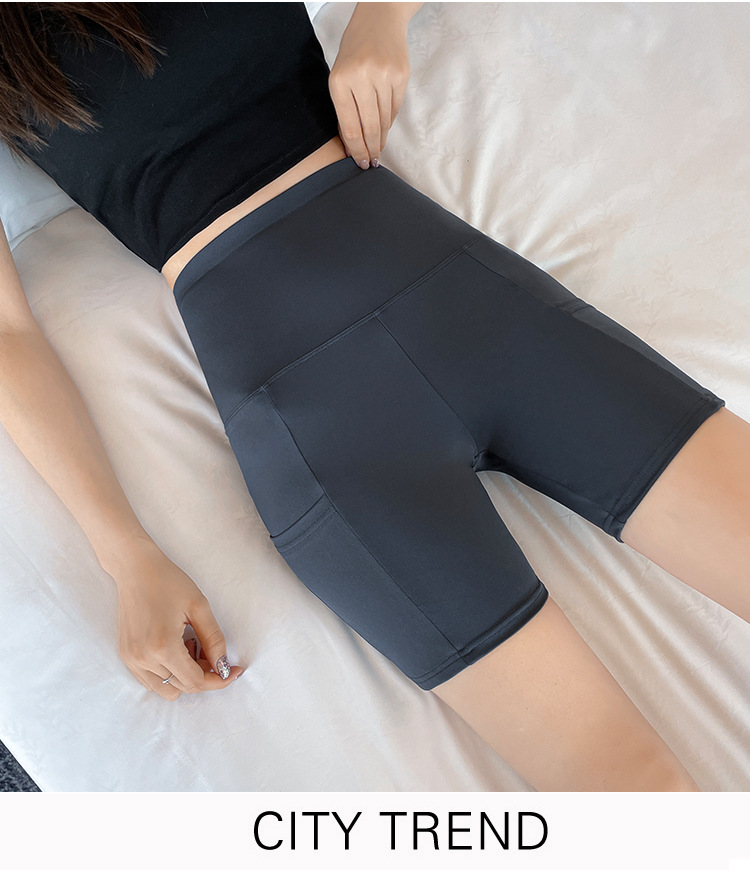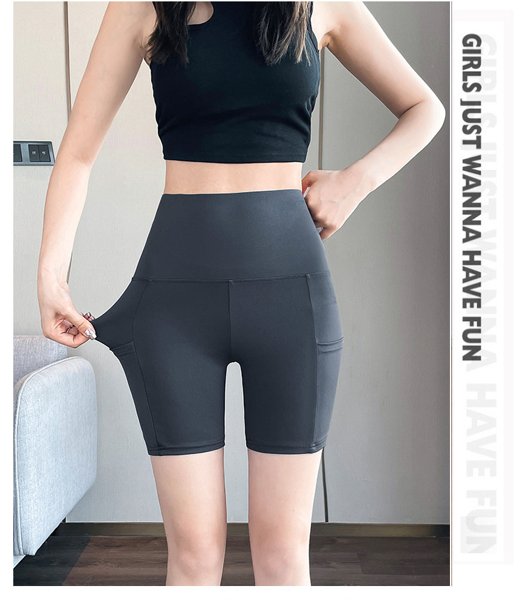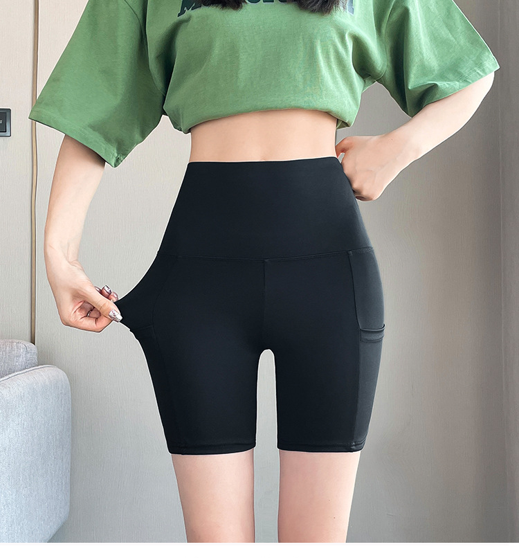 여름 포켓 3 점 상어 바지 높은 허리 슬리밍 레깅스 여성 승마 요가 스포츠 반바지 안전 바지