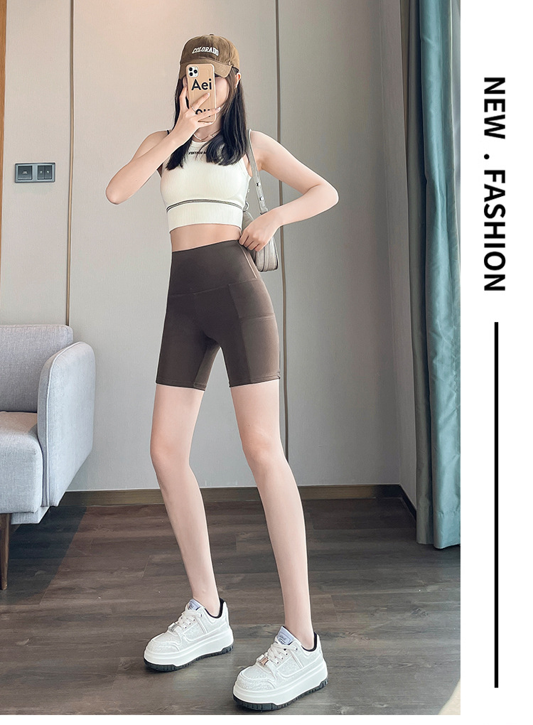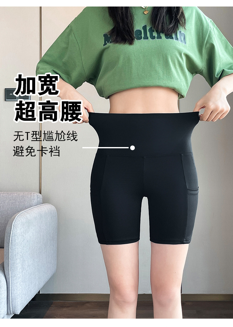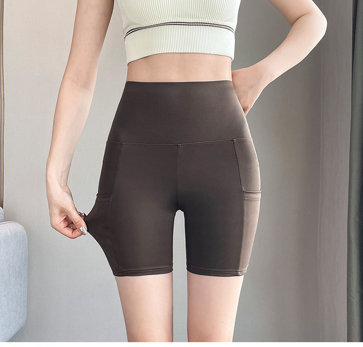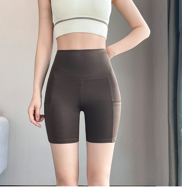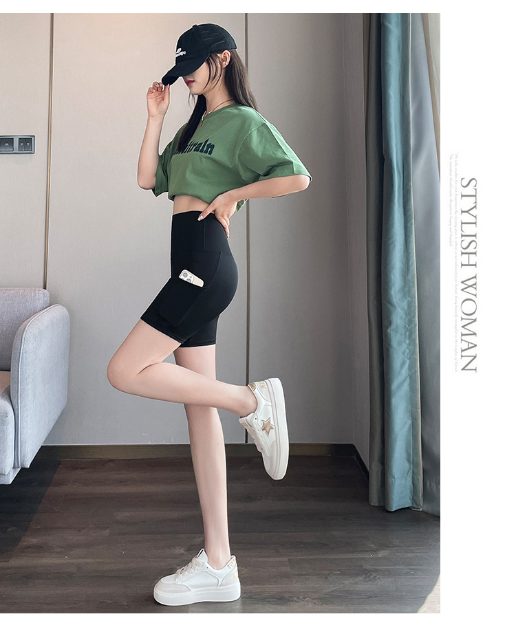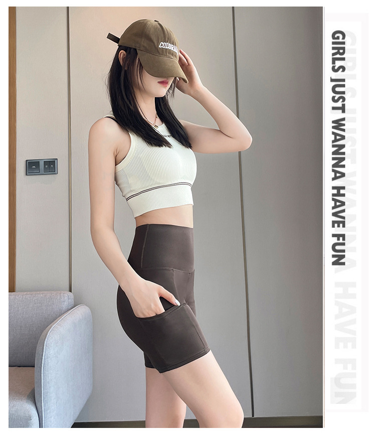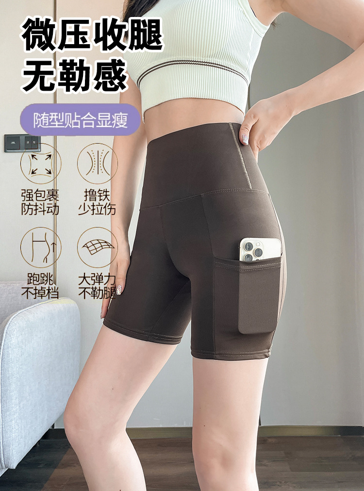 여름 포켓 3 점 상어 바지 높은 허리 슬리밍 레깅스 여성 승마 요가 스포츠 반바지 안전 바지