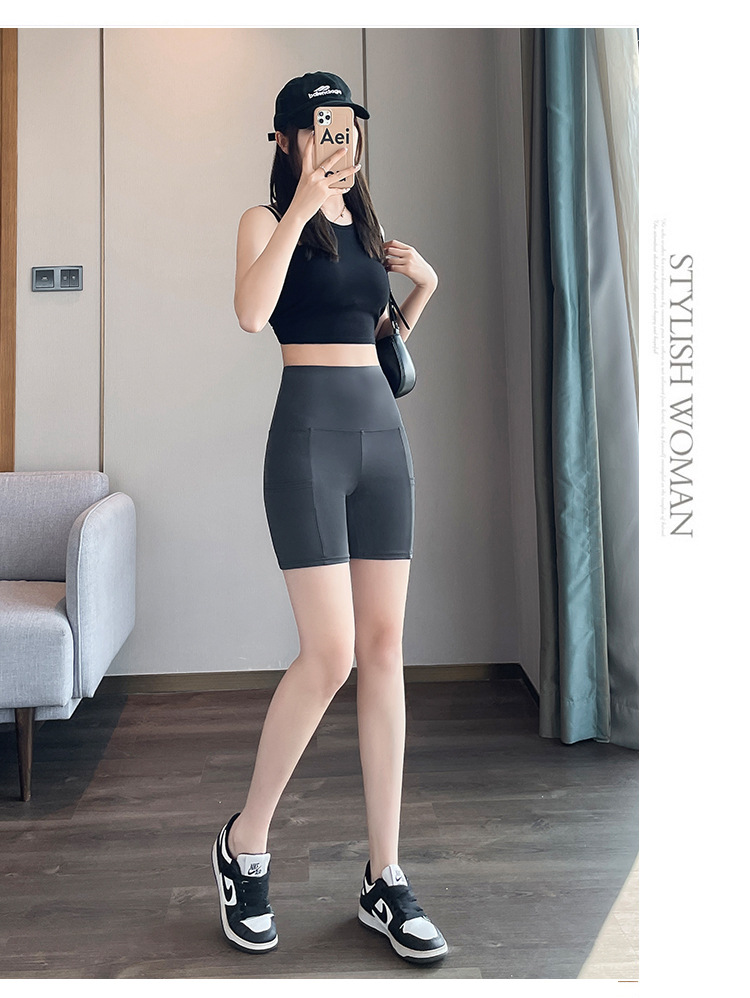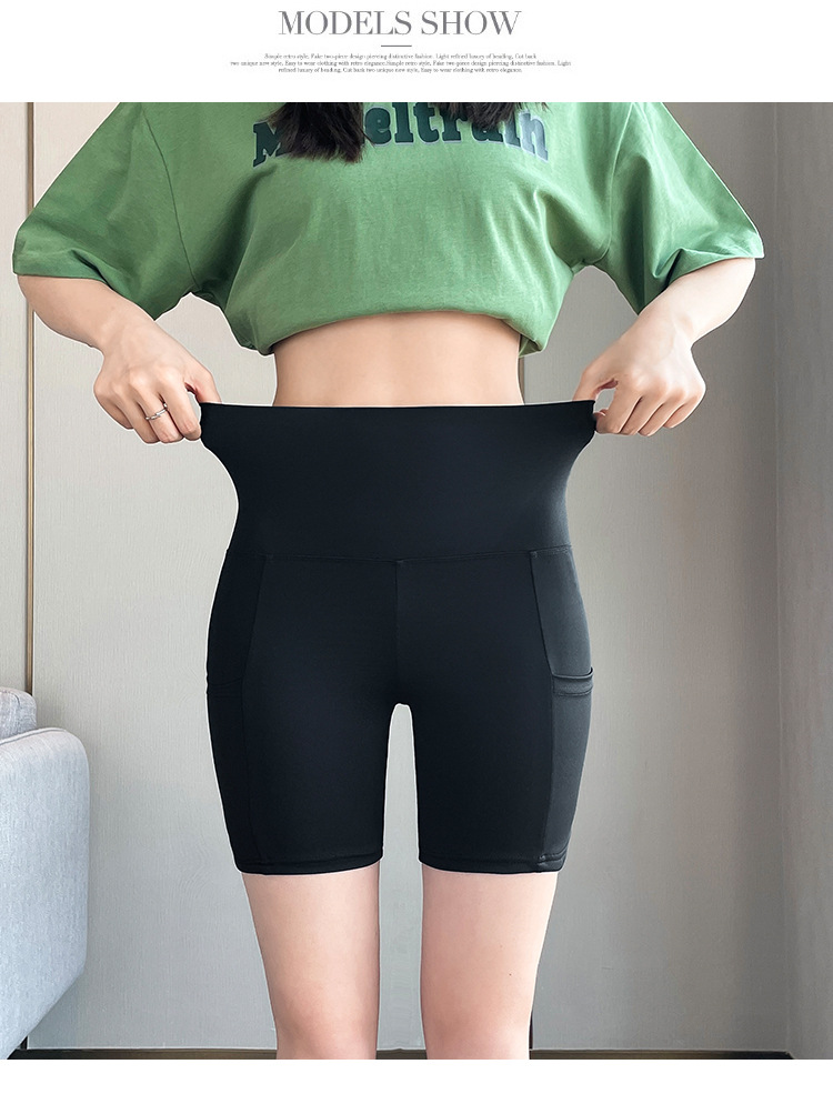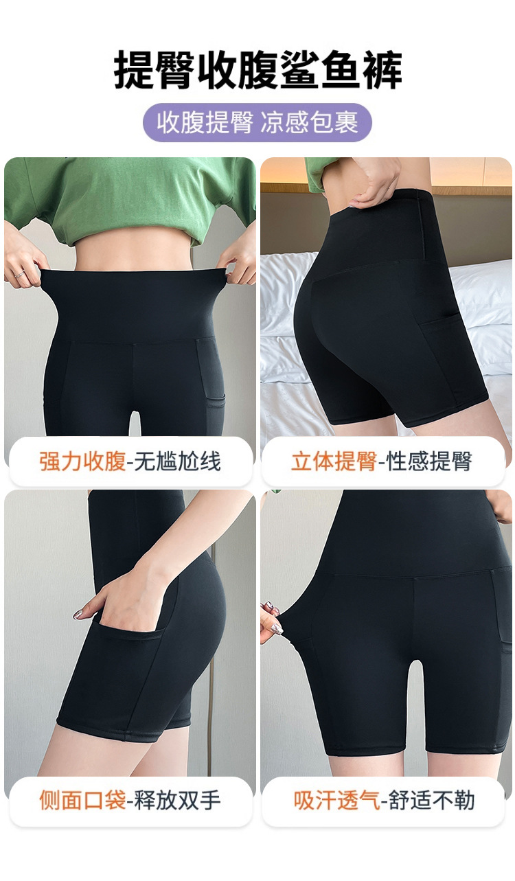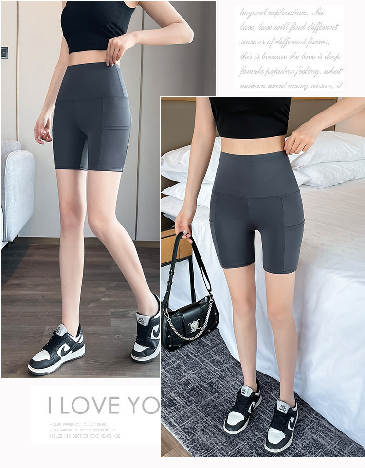 여름 포켓 3 점 상어 바지 높은 허리 슬리밍 레깅스 여성 승마 요가 스포츠 반바지 안전 바지스토어 가기