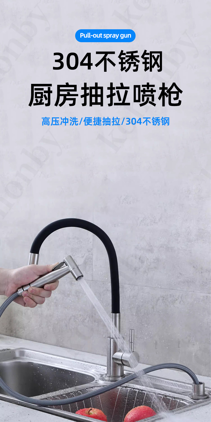 304 스테인레스 스틸 가압 주방 싱크 스프레이 건 수도꼭지 싱크 야채 분지 드로우드 린싱 건 세트