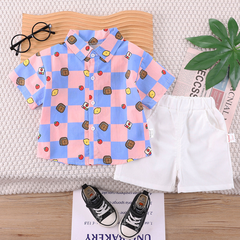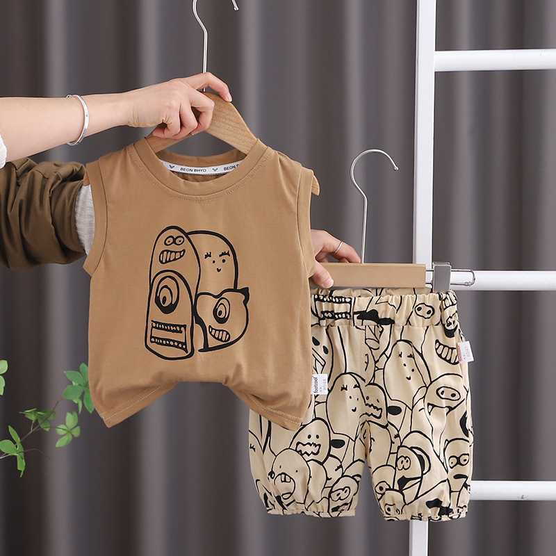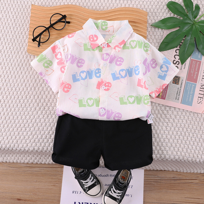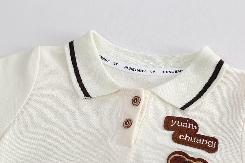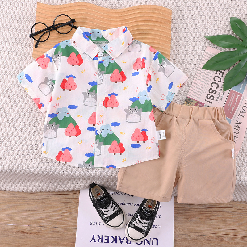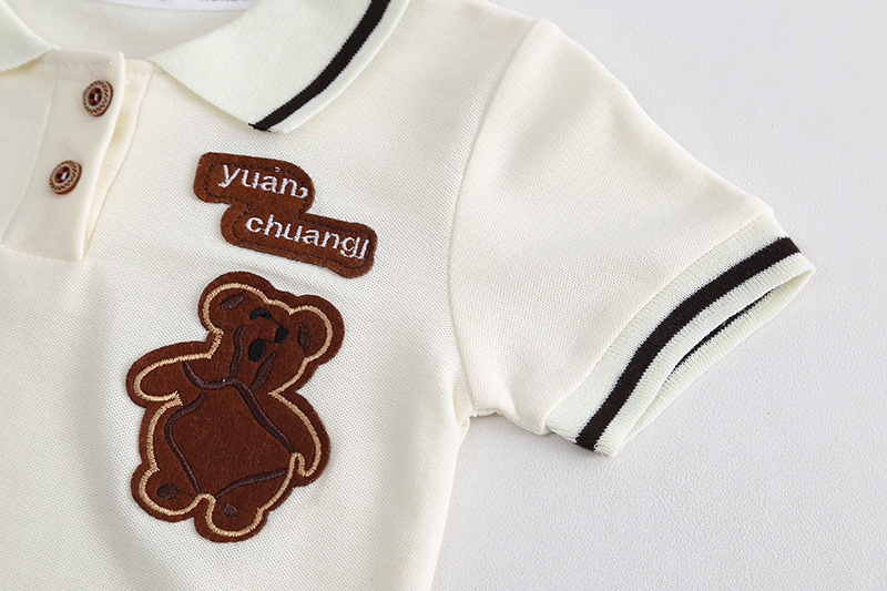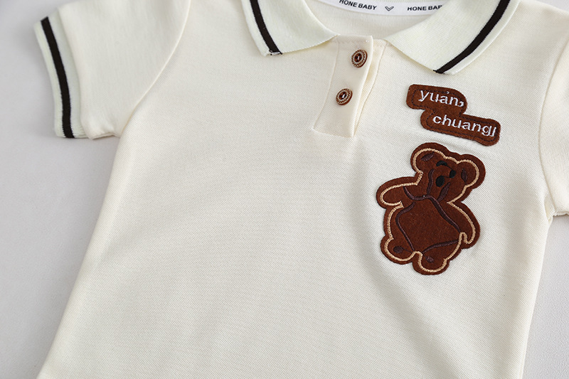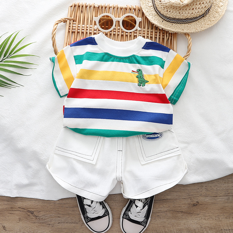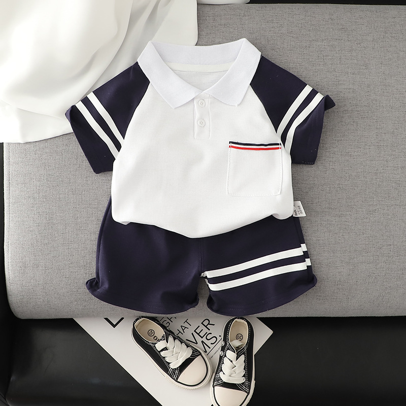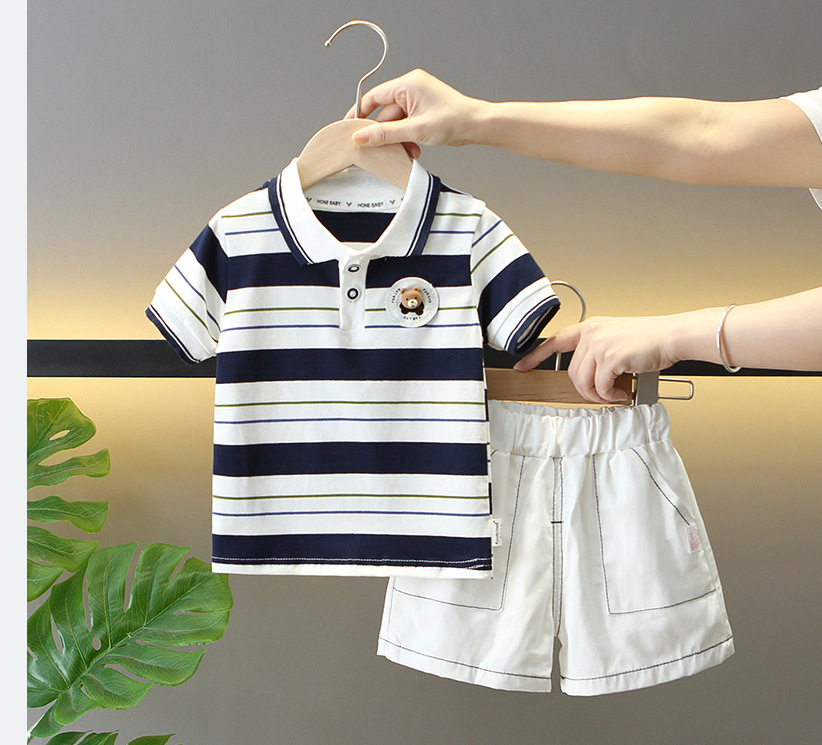 대외 무역 소년의 여름 원피스 세트 2024 여름 새로운 스타일 아기 소년의 패션 줄무늬 폴로 셔츠 2 조각 유행 세트