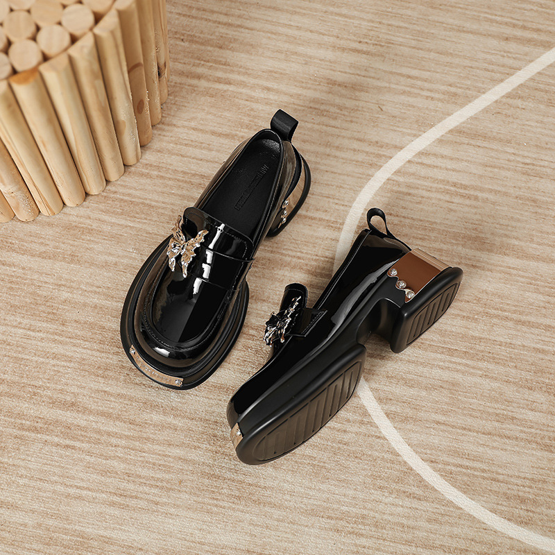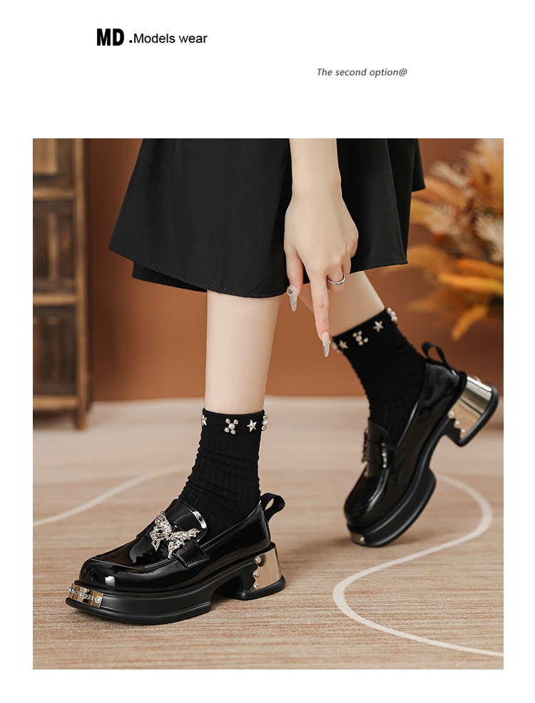 재고 있음 ~ 프랑스 신작 여성용 로퍼 2025 봄 영국 스타일 나비 작은 가죽 신발 두꺼운 밑창 JK 신발스토어 가기