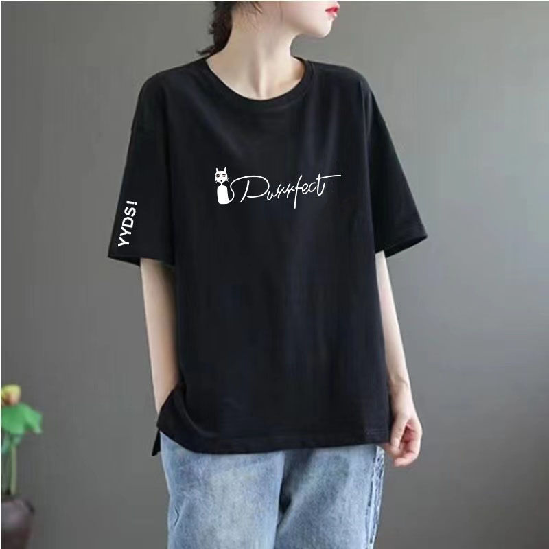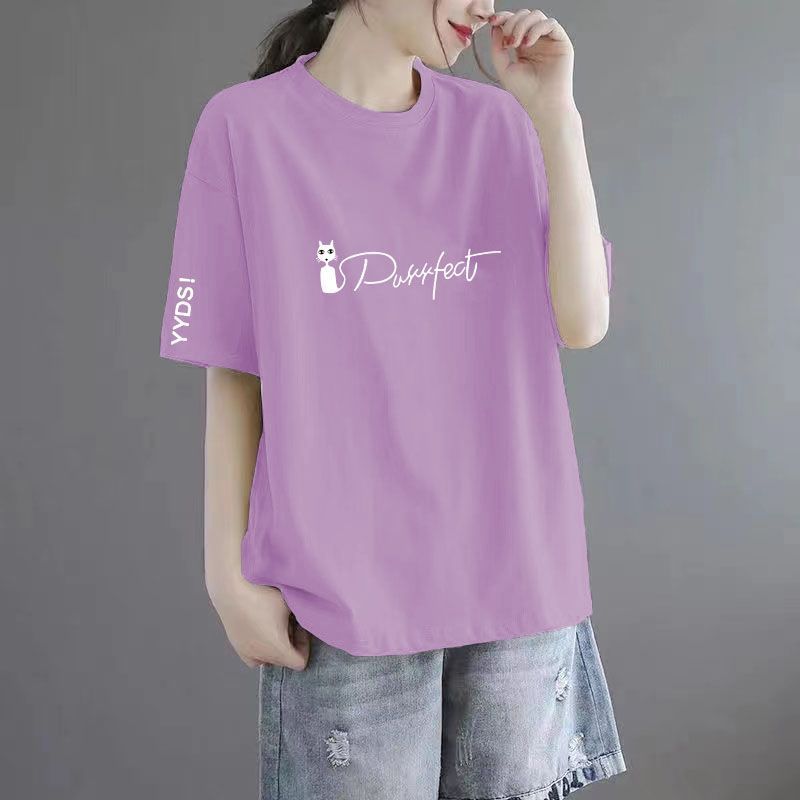 여름 느슨한 슬림 배 덮는면 반 소매 최고 배 매우 큰 크기 여성의 300 진지방 MMT 짧은 소매스토어 가기