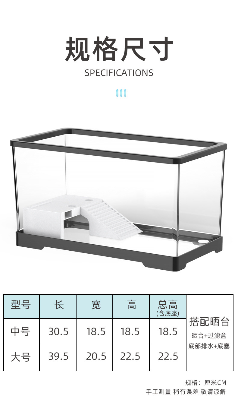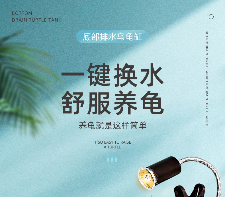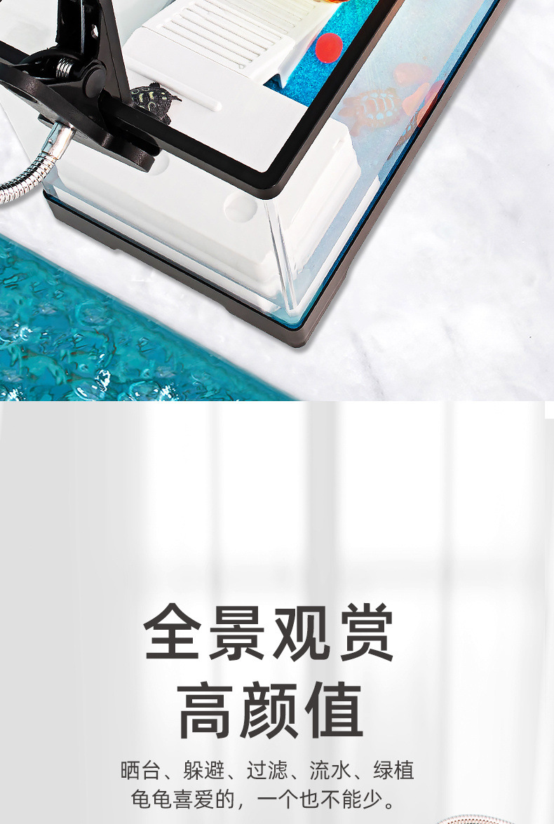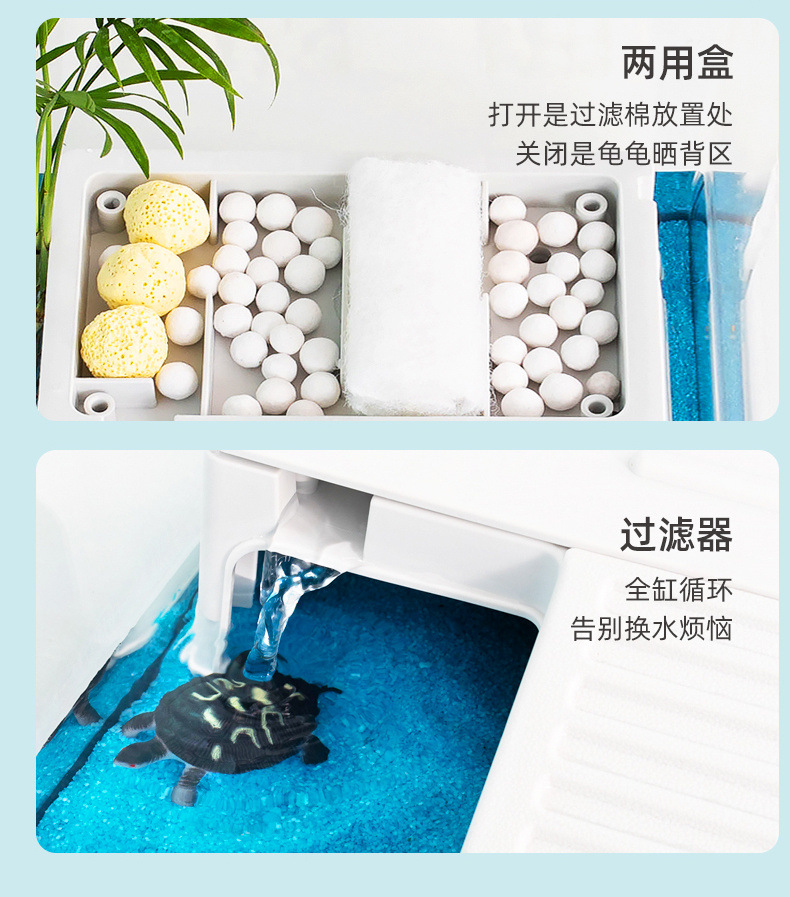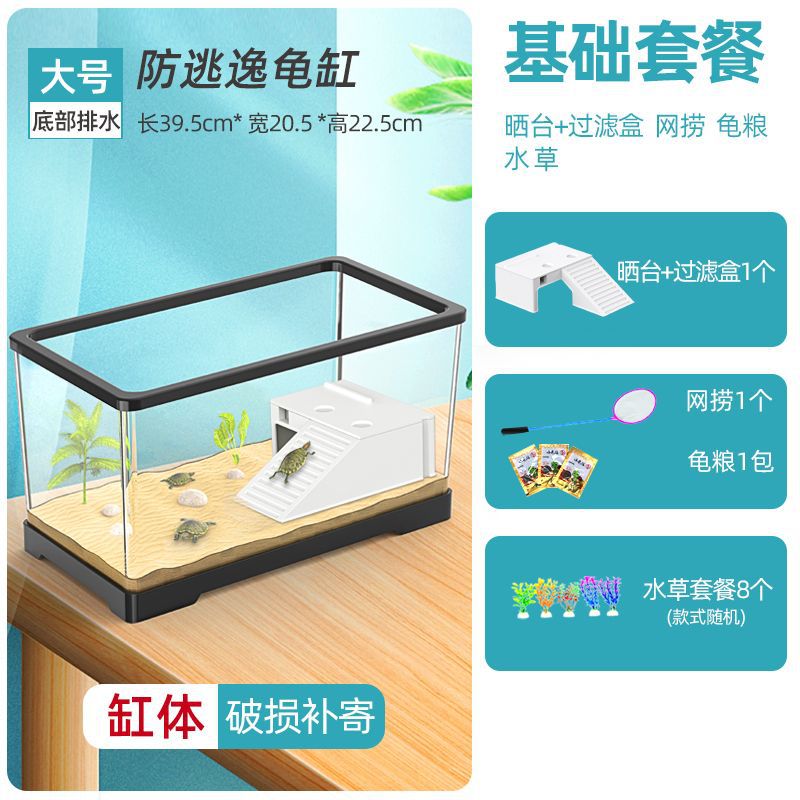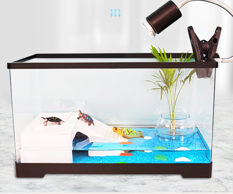 거북이 크기 브라질 거북이 물 및 토지 가정용 물 순환 거북이 상자 햇빛이있는 거북이 탱크 특수 생태 탱크스토어 가기