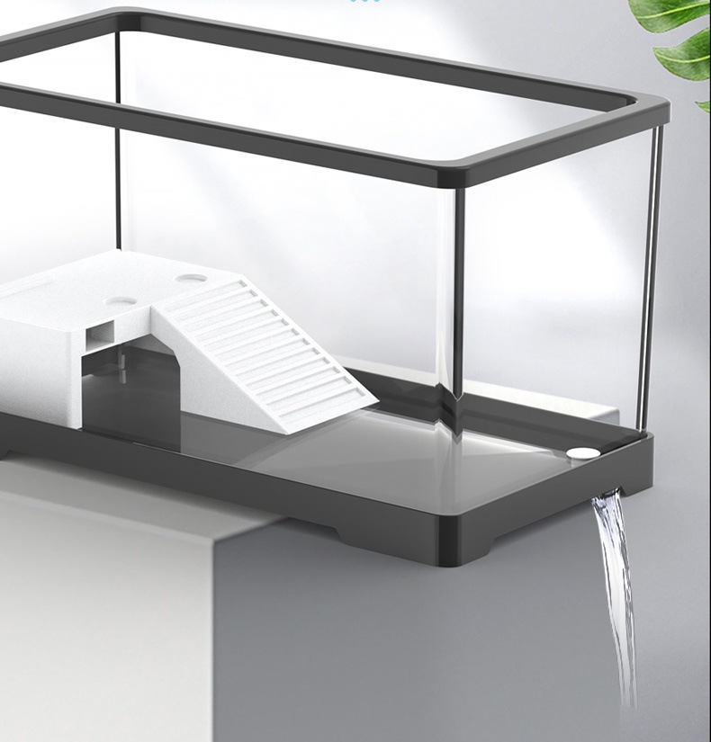 거북이 크기 브라질 거북이 물 및 토지 가정용 물 순환 거북이 상자 햇빛이있는 거북이 탱크 특수 생태 탱크