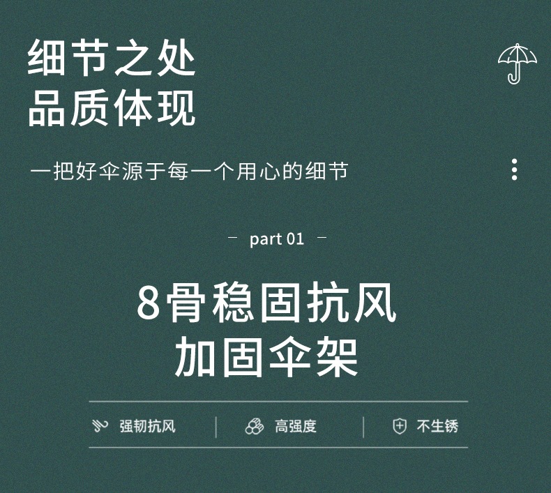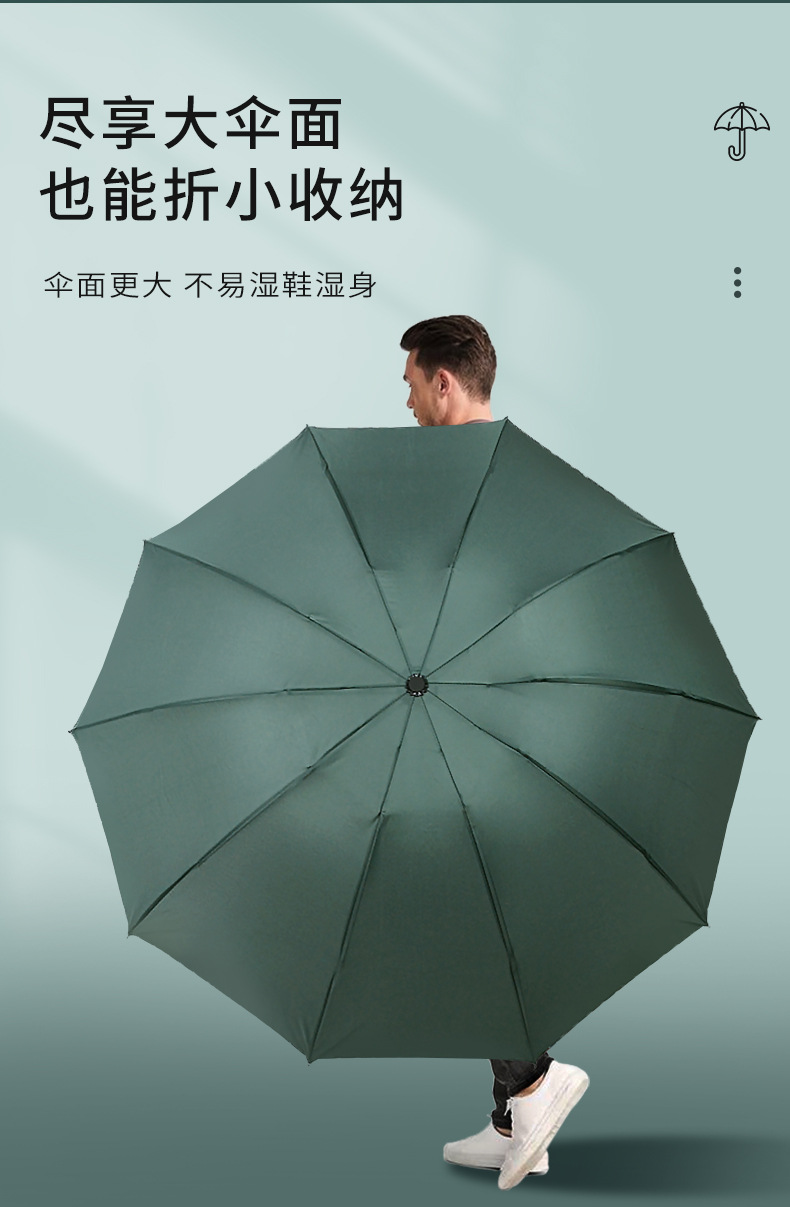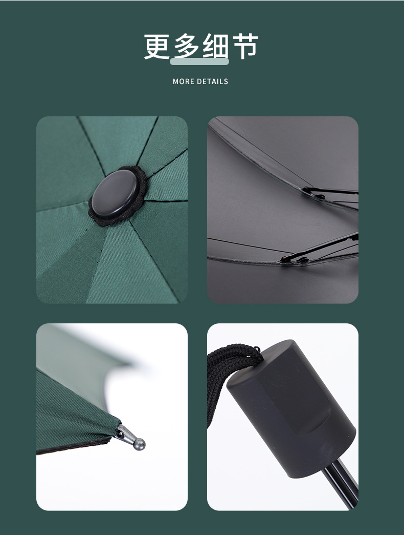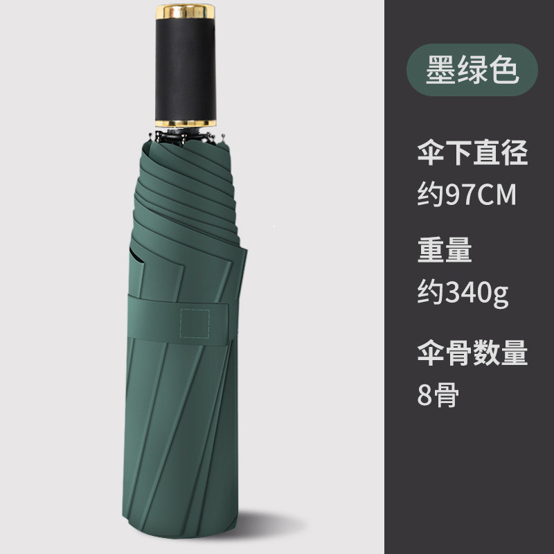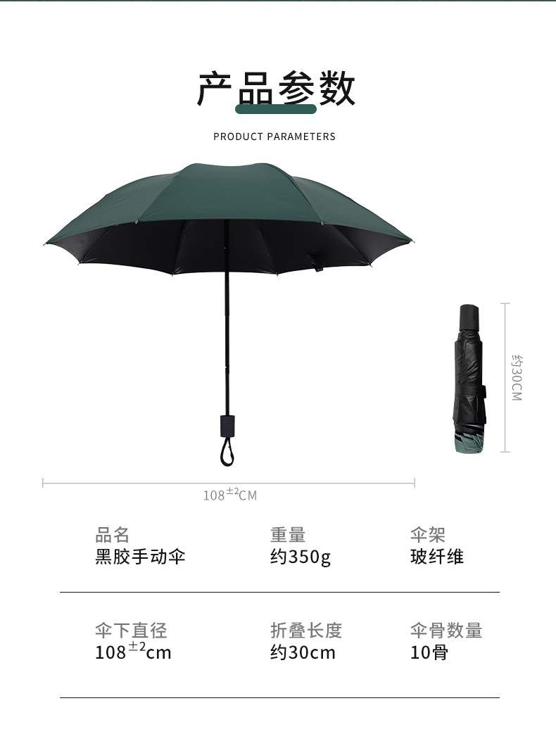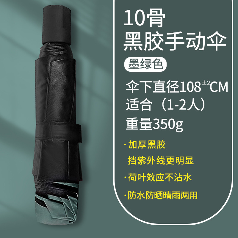 • 10 뼈 검은 접착제 수동 우산 "다크 그린"