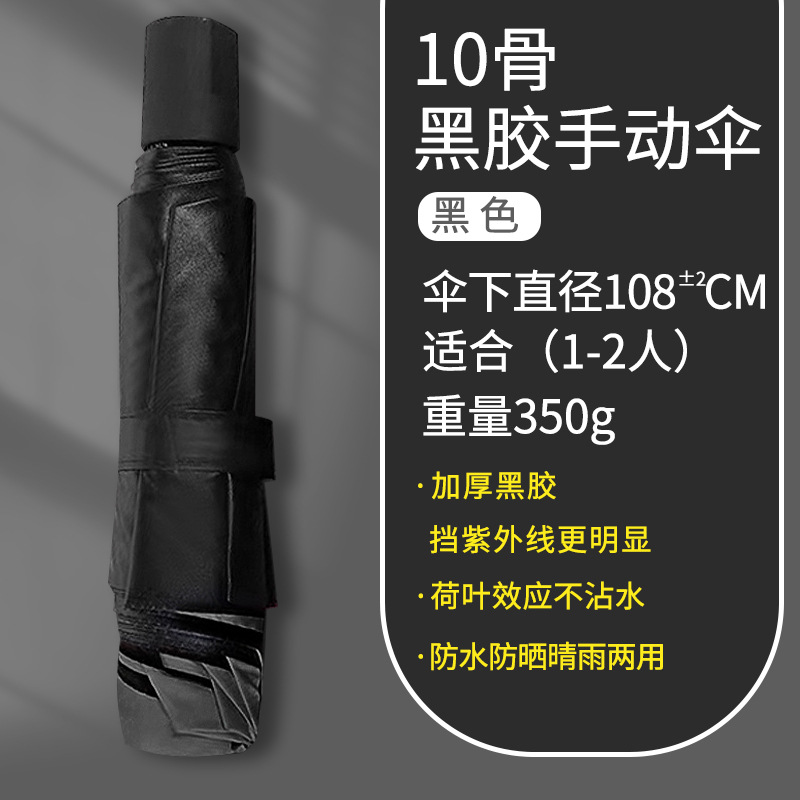 • 10 뼈 비닐 수동 우산 "검은 색"