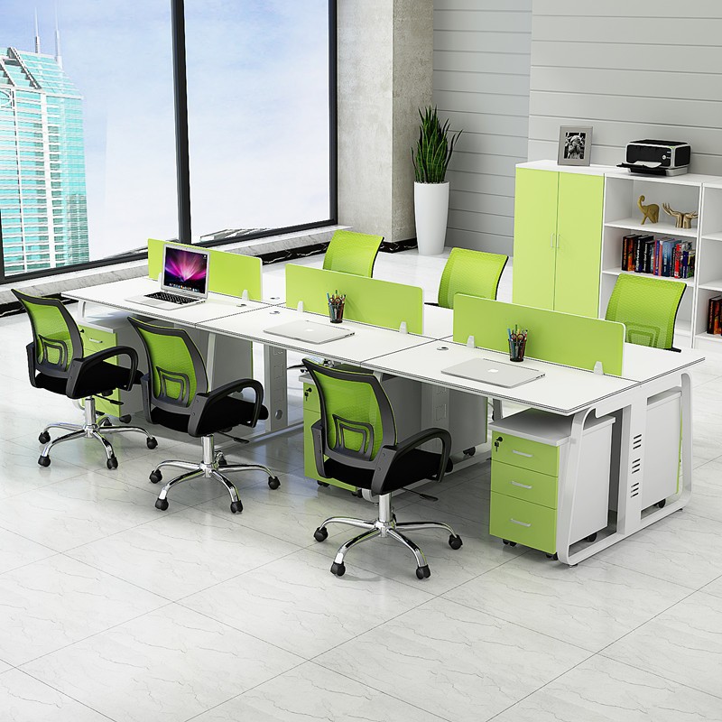 사무실 스크린 플레이트 사다리꼴 프레임 직원 책상 4 6 인 재고 도매 컴퓨터 책상스토어 가기