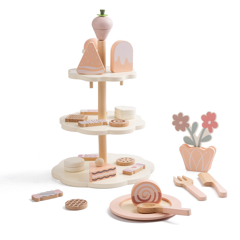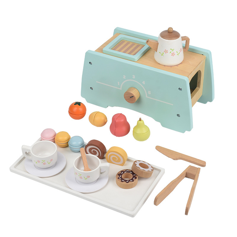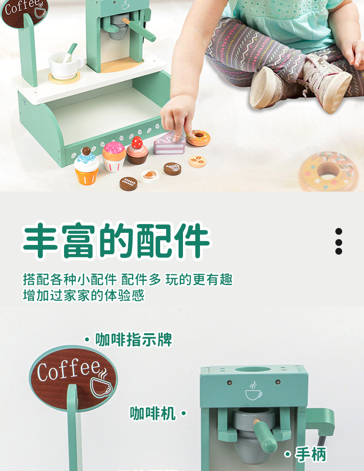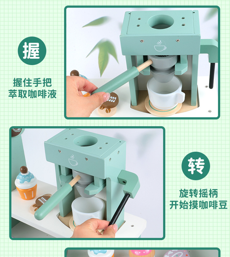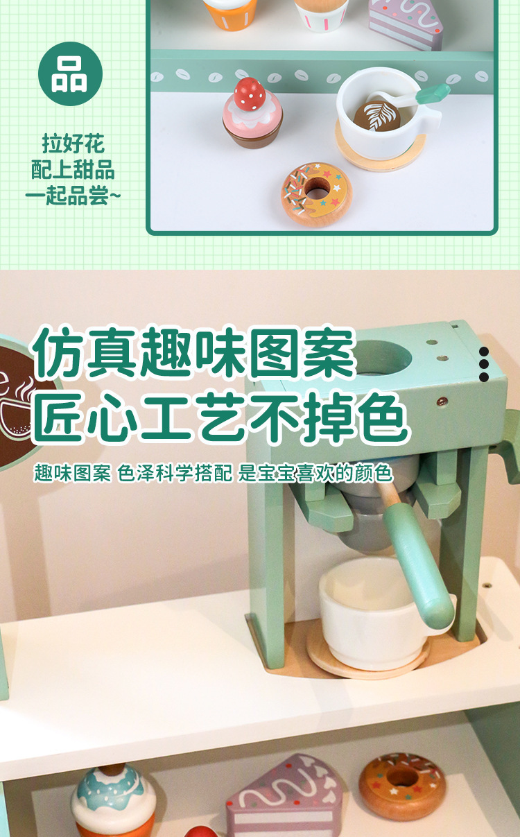 국경을 넘는 어린이 놀이용 시뮬레이션 커피 머신 디저트 가게 역할놀이 판매점 나무 장난감