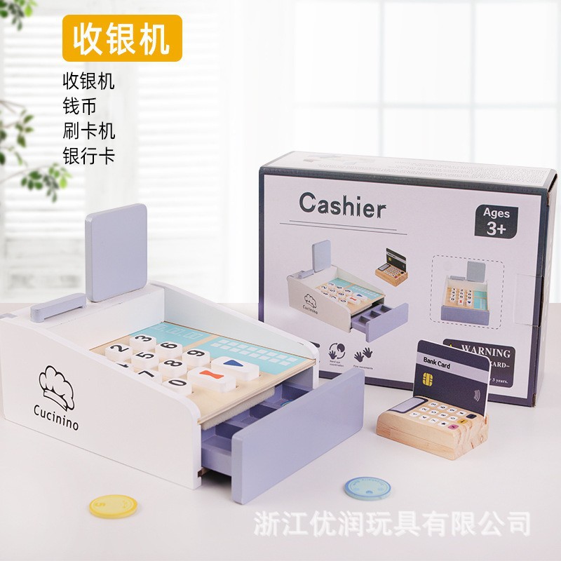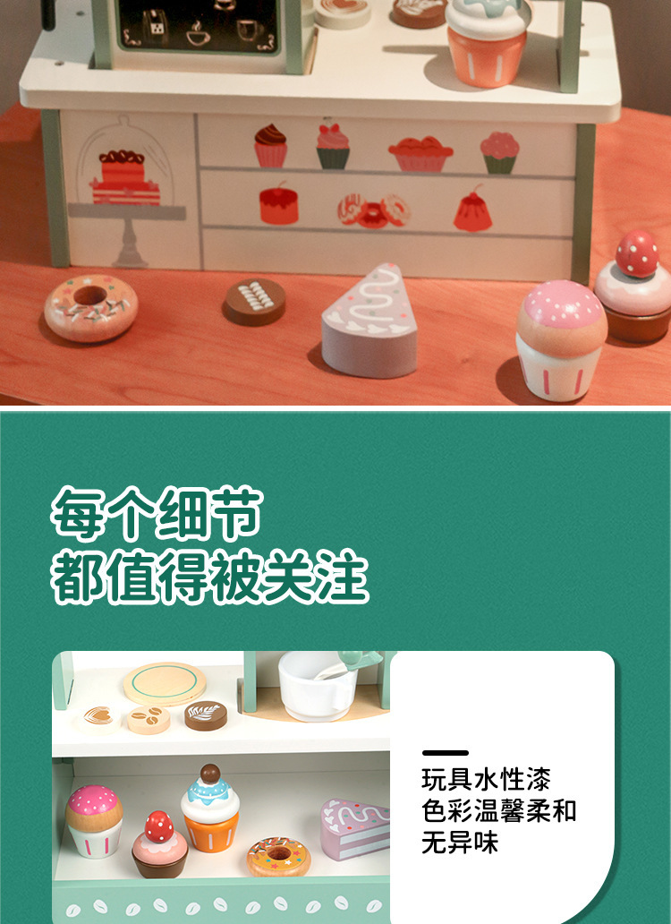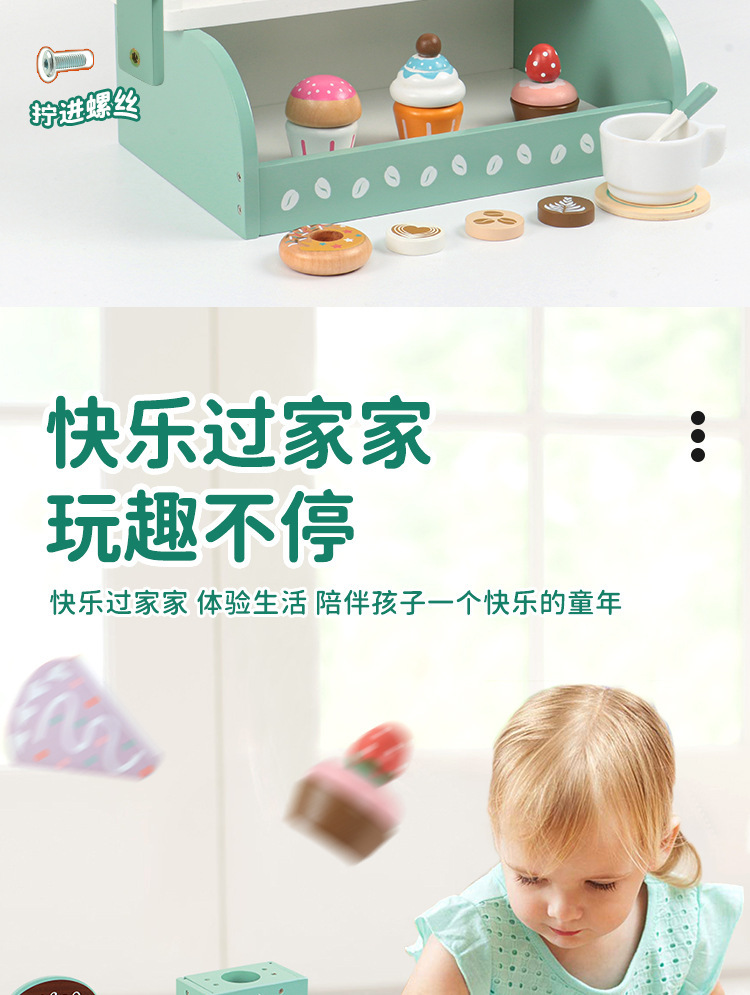 국경을 넘는 어린이 놀이용 시뮬레이션 커피 머신 디저트 가게 역할놀이 판매점 나무 장난감스토어 가기