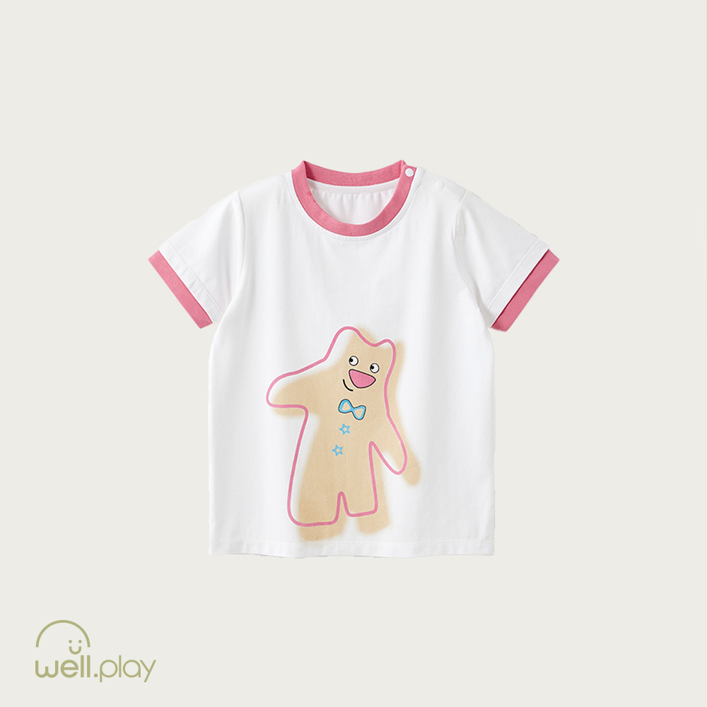 [클리어아웃 픽업] Wilberu 남아 및 여아 면 반팔 여름 얇은 상의 A형 베이비 티셔츠스토어 가기