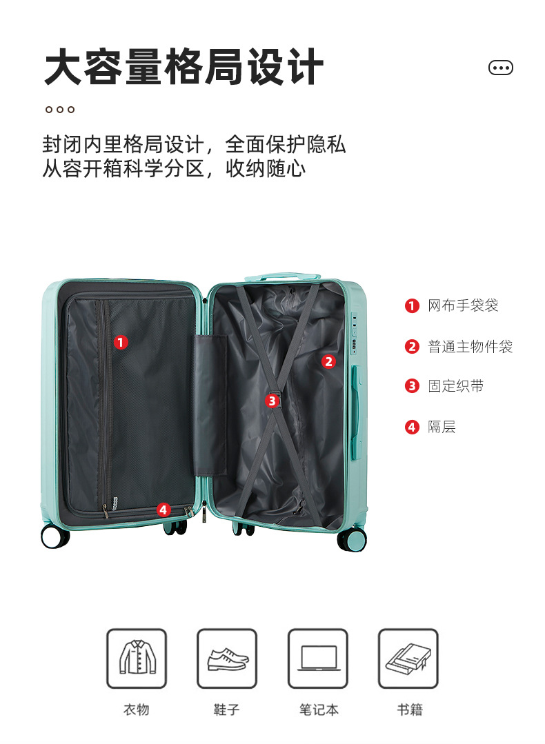 埋词 大容量行李箱 科学分区收纳 旅行箱内里结构 衣物收纳箱 分层拉杆箱