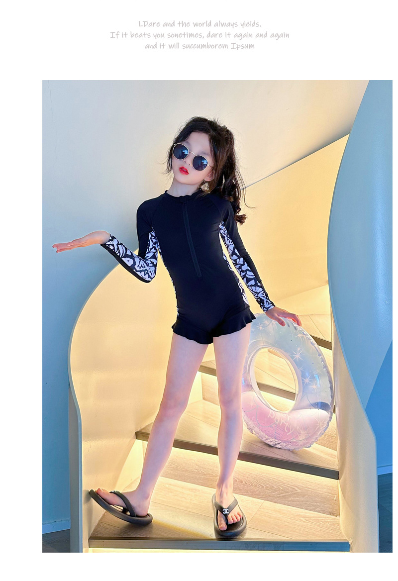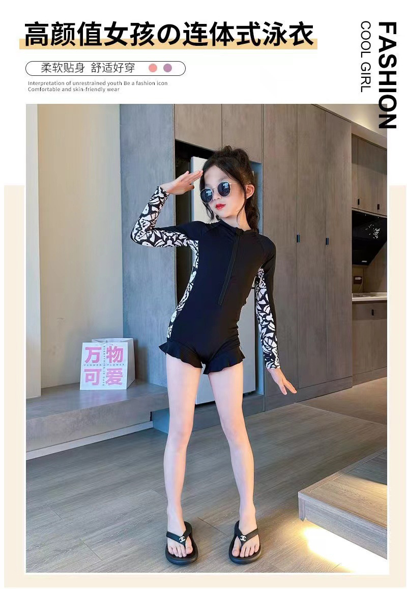 여아 원피스 수영복 신상 여름 패션 얇은 스타일리쉬 긴팔 자외선 차단 보수적인 여아 수영복 도매