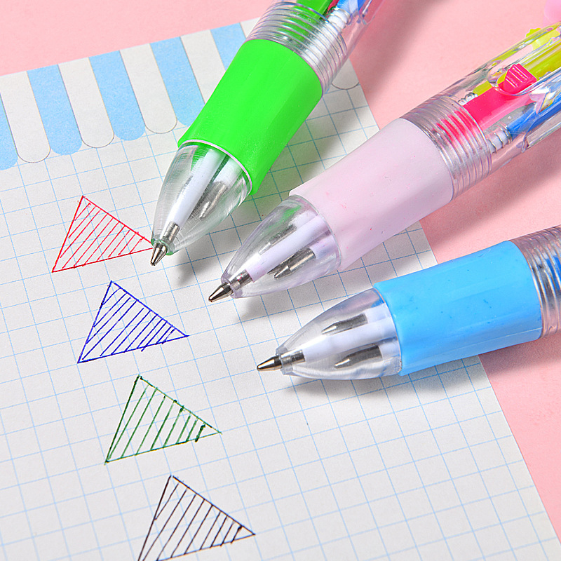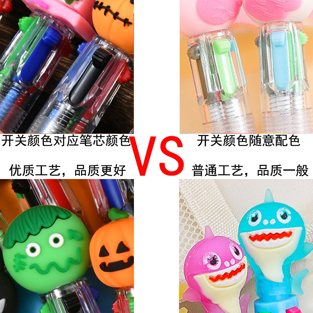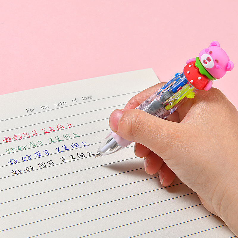 귀여운 만화 미니 4 색 볼펜 실리콘 짧은 펜 쉬운 4 색 펜 학생 손 계정 멀티 컬러 볼펜