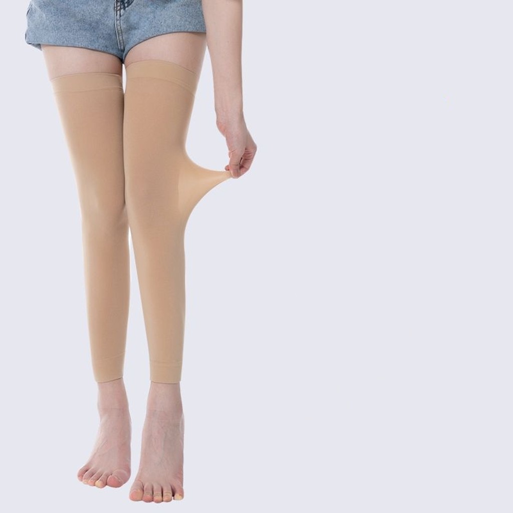 봄과 가을 오픈 발가락 미드 튜브 스타킹 여성용 선 스크린 스킨 컬러 하이 길이 스타킹 송아지 하프 컷 생선 입 오버 무릎 허벅지 스타킹