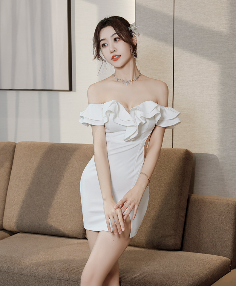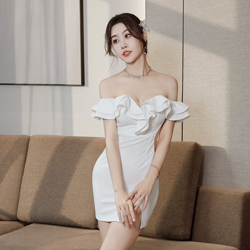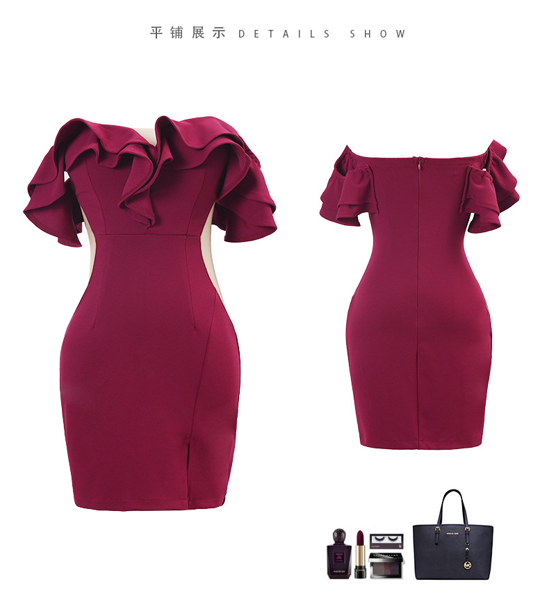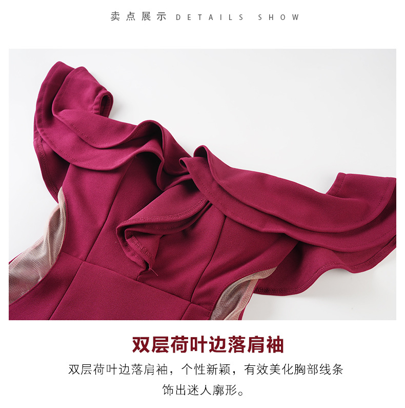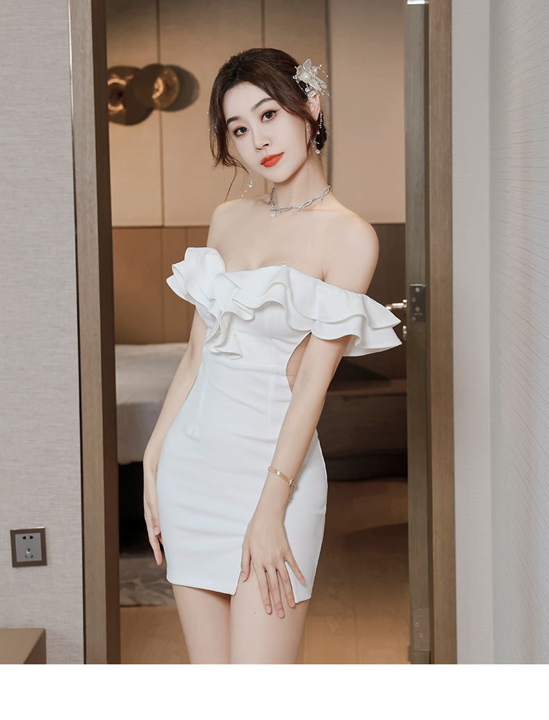 틈새 섹시한 그물 빨간 사진 원피스 2024 새로운 주름 장식 어깨 나이트 클럽 핫 소녀 엉덩이 치마