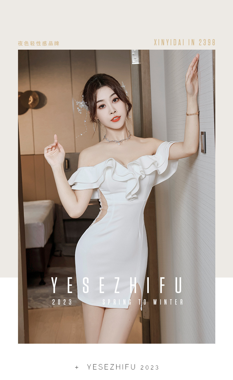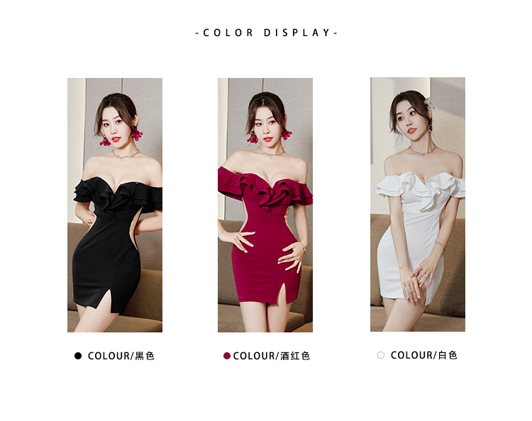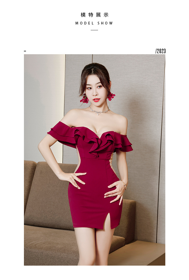 틈새 섹시한 그물 빨간 사진 원피스 2024 새로운 주름 장식 어깨 나이트 클럽 핫 소녀 엉덩이 치마스토어 가기