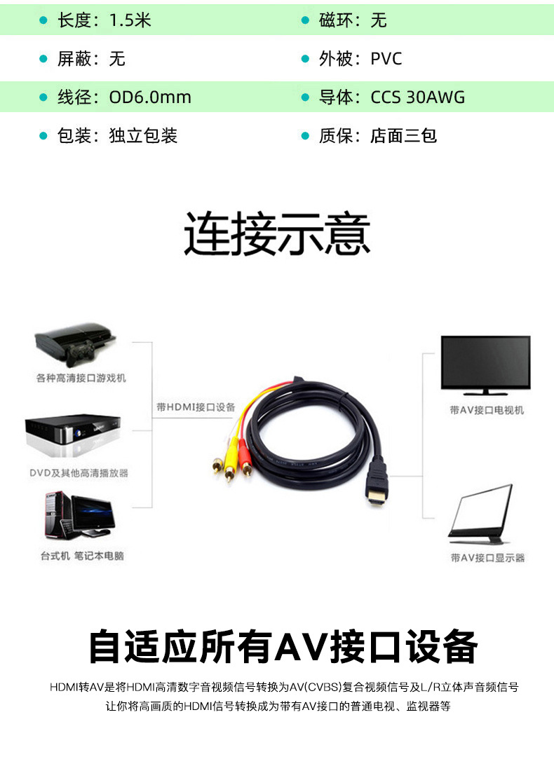 HD hdmi ~ 3rcaAV 라인 연꽃 라인 플러그 하나 AV 라인 오디오 및 비디오 라인 세 연꽃 세 빨간색과 흰색 노란색스토어 가기