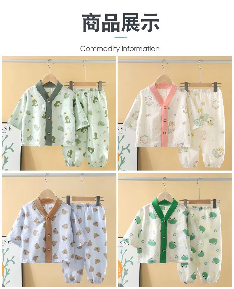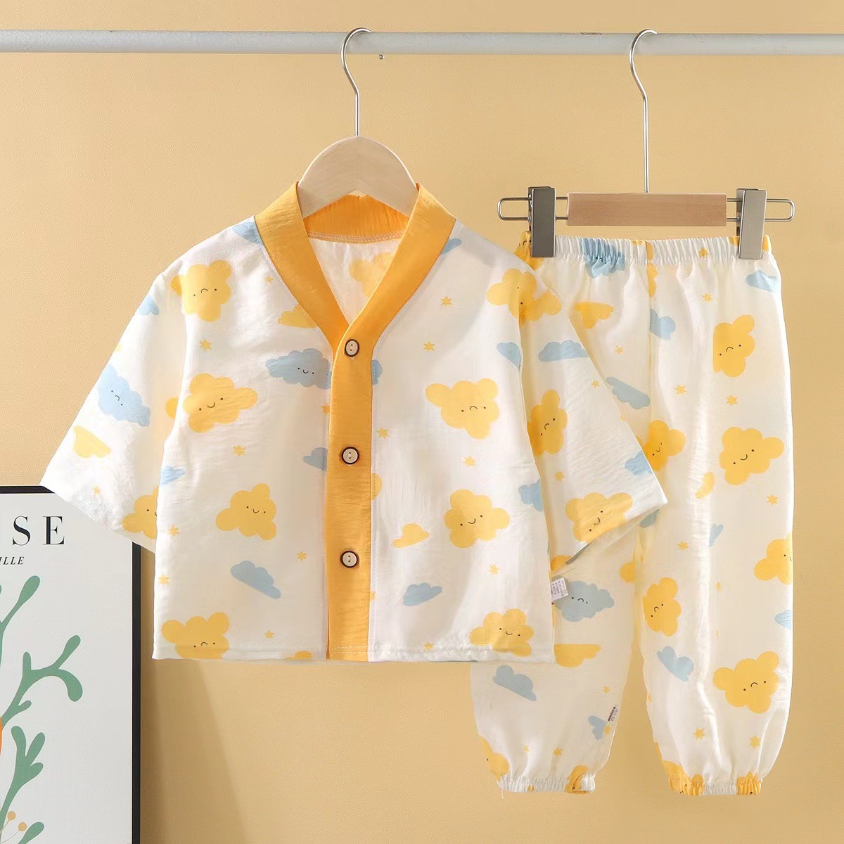 어린이 홈웨어 세트 여름 남아 여아 가디건 세트 얇은 아기 캐주얼 중대형 어린이 에어컨 의류
