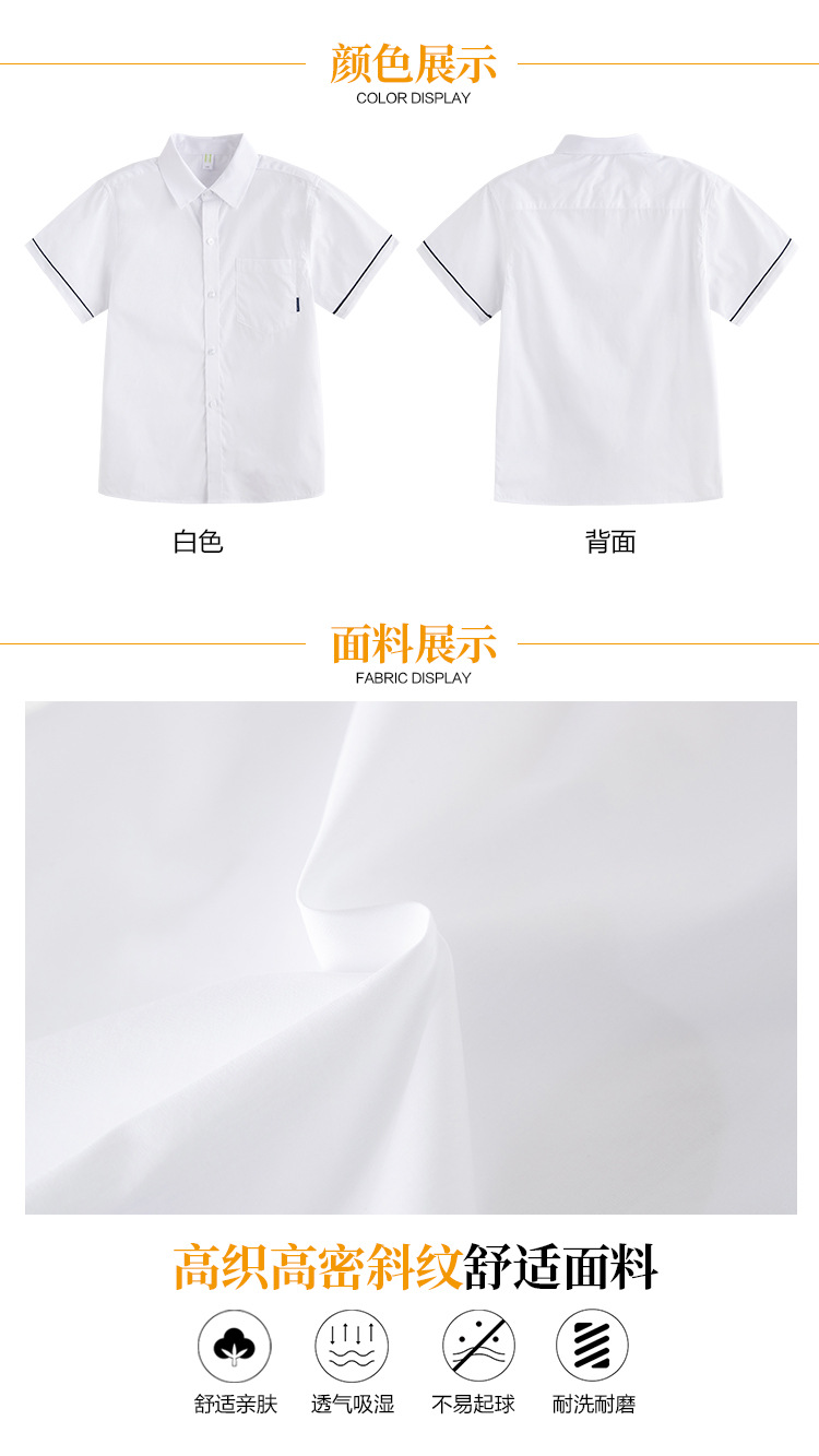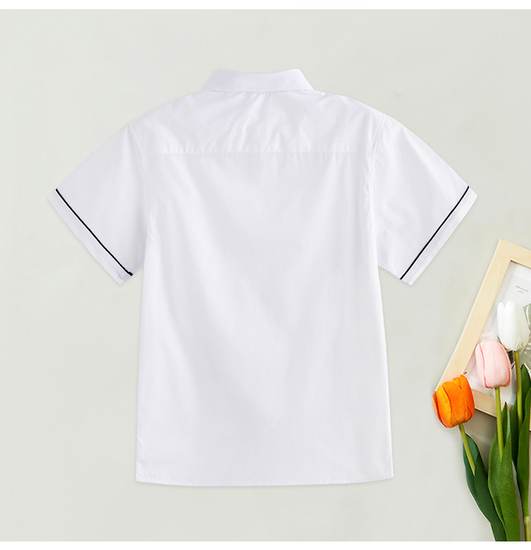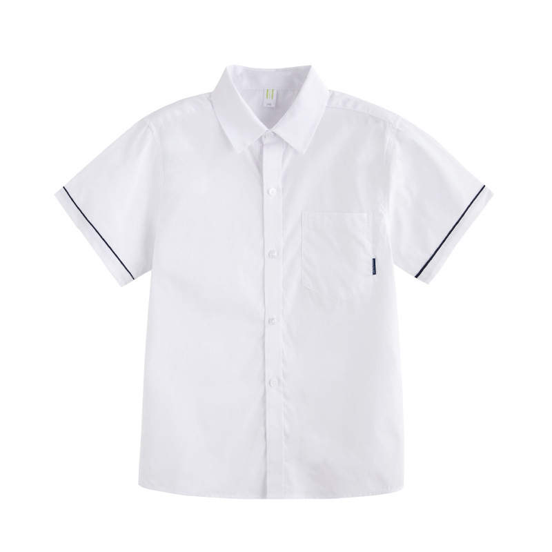 소년 반소매 화이트 셔츠 여름 새로운 도착 커프 블랙 사이드 포켓 라벨 반소매 코튼 학생 유니폼 화이트 셔츠
