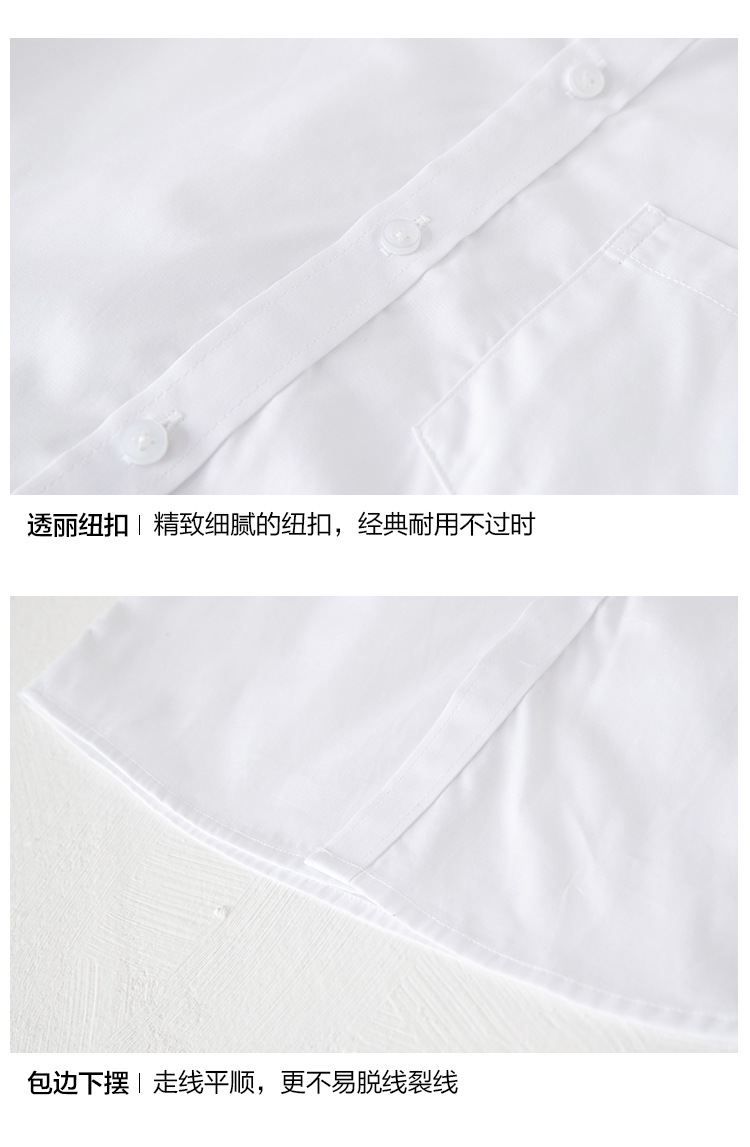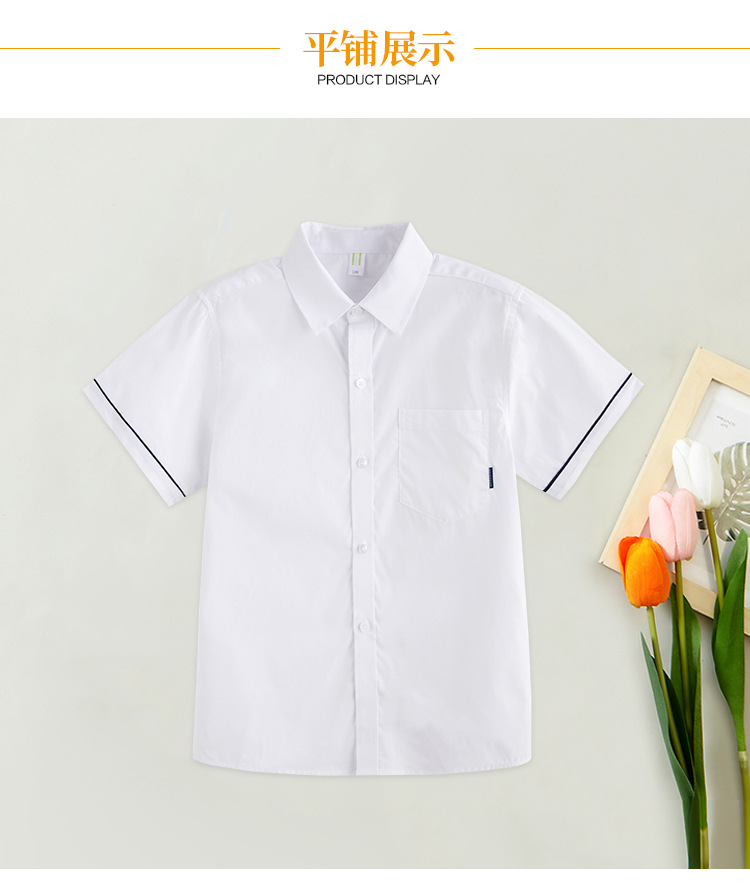 소년 반소매 화이트 셔츠 여름 새로운 도착 커프 블랙 사이드 포켓 라벨 반소매 코튼 학생 유니폼 화이트 셔츠스토어 가기