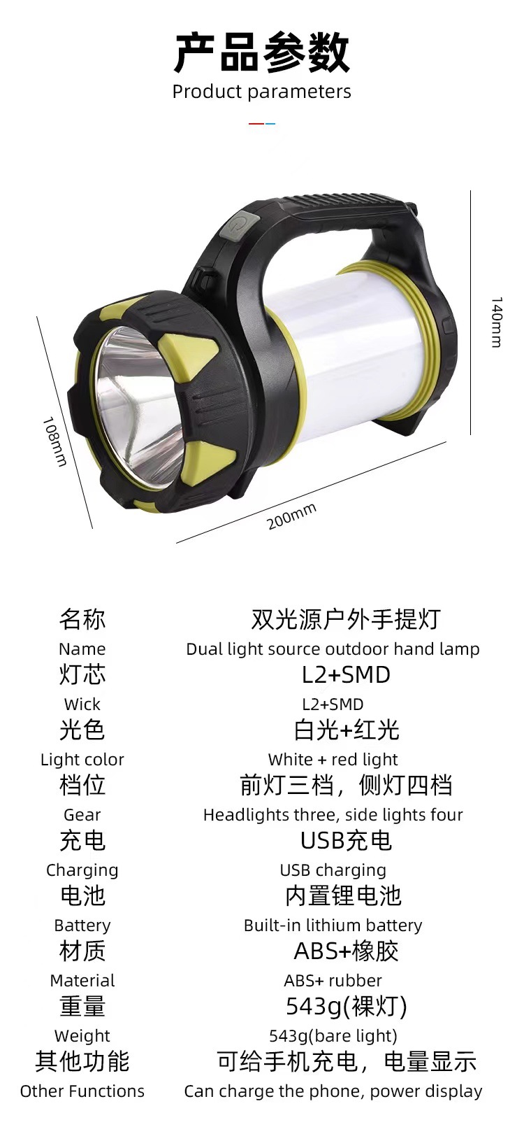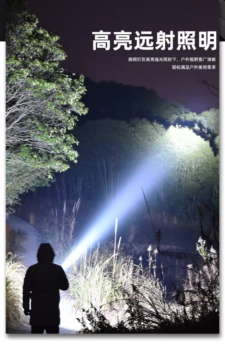 국경 강한 빛 휴대용 램프 대용량 장거리 야외 다기능 탐조등 슈퍼 밝은 긴 내구성 비상 조명
