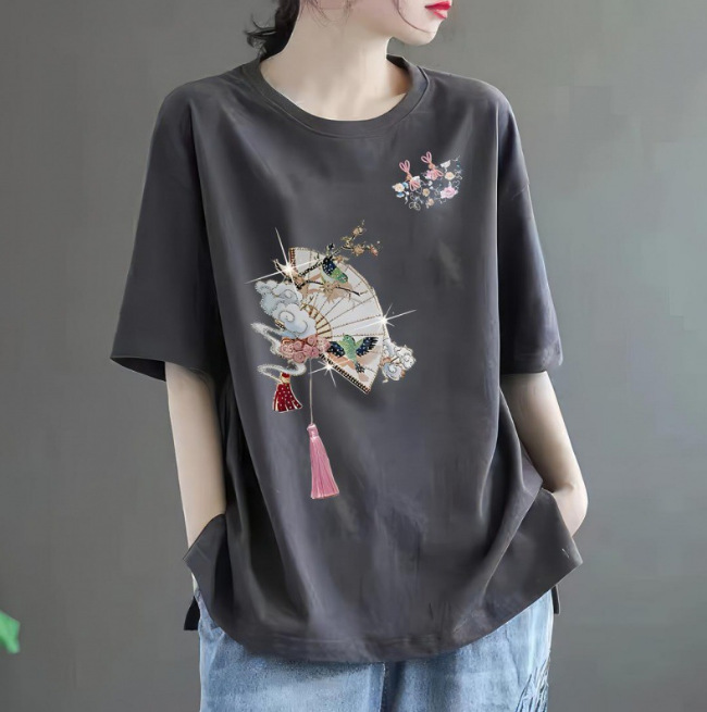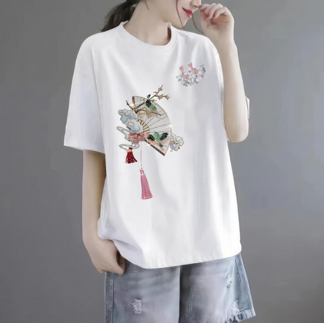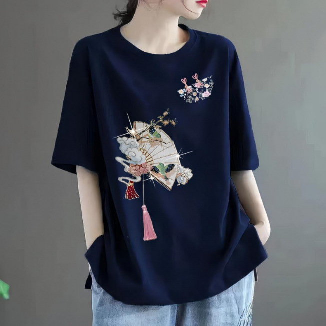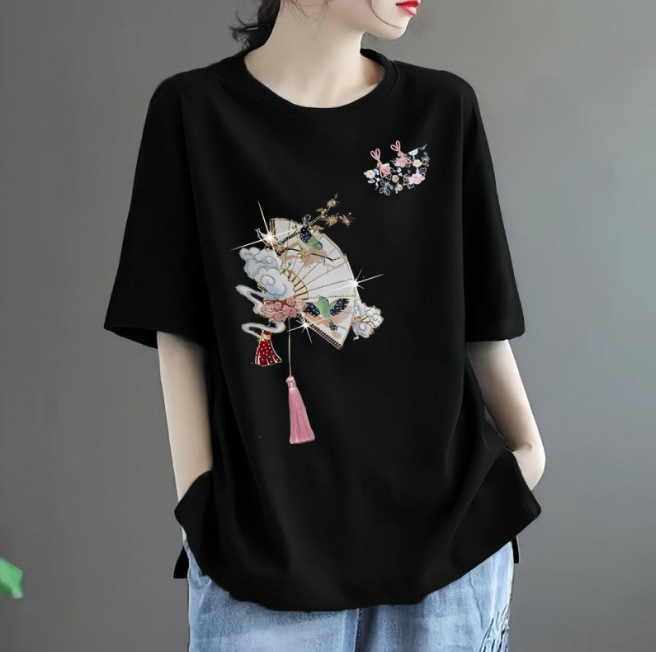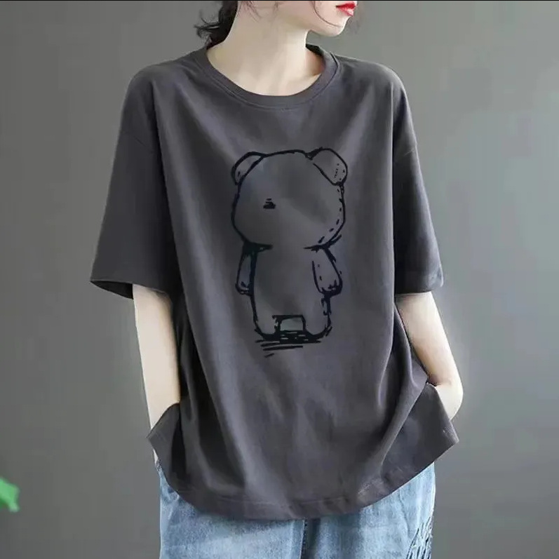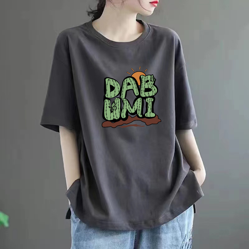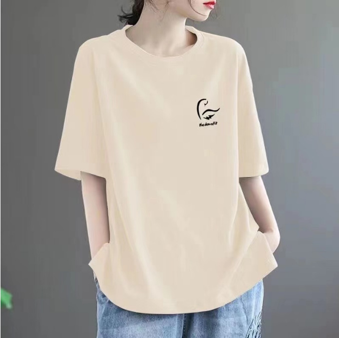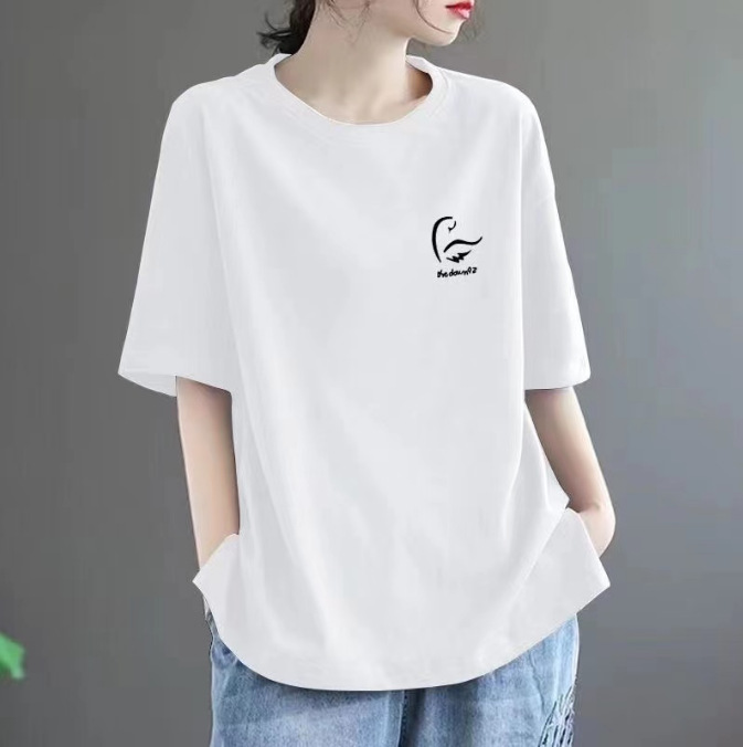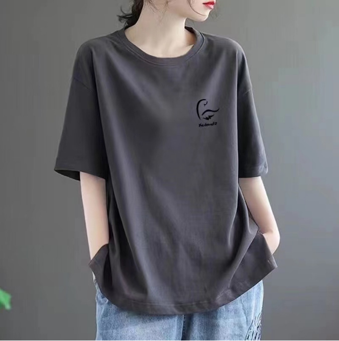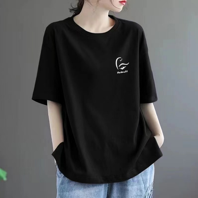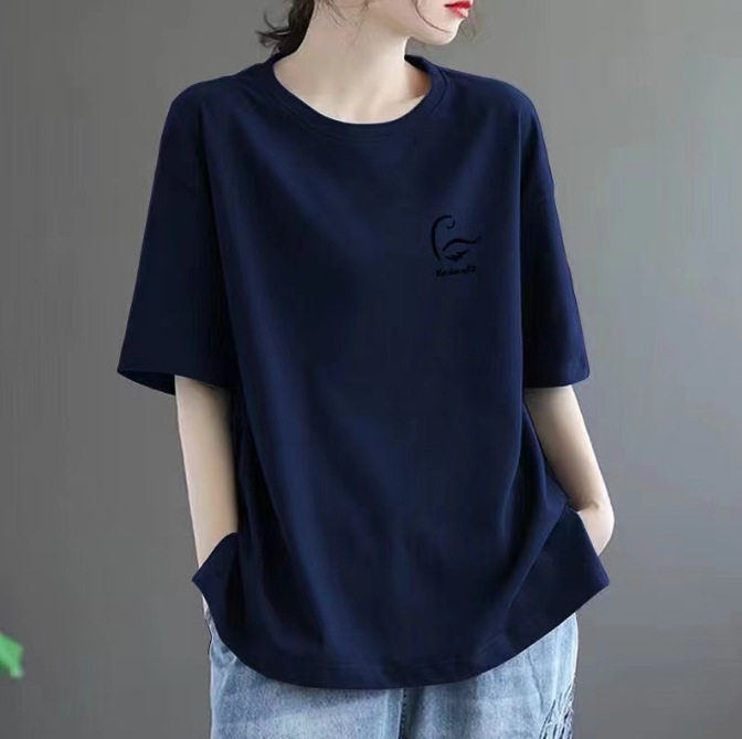 퓨어 코튼 2024 여름 뉴 플러스 사이즈 여성용 티셔츠 반팔 느슨한 통통녀 살을 덮는 고급 슬리밍 탑 인 트렌디스토어 가기