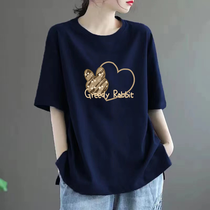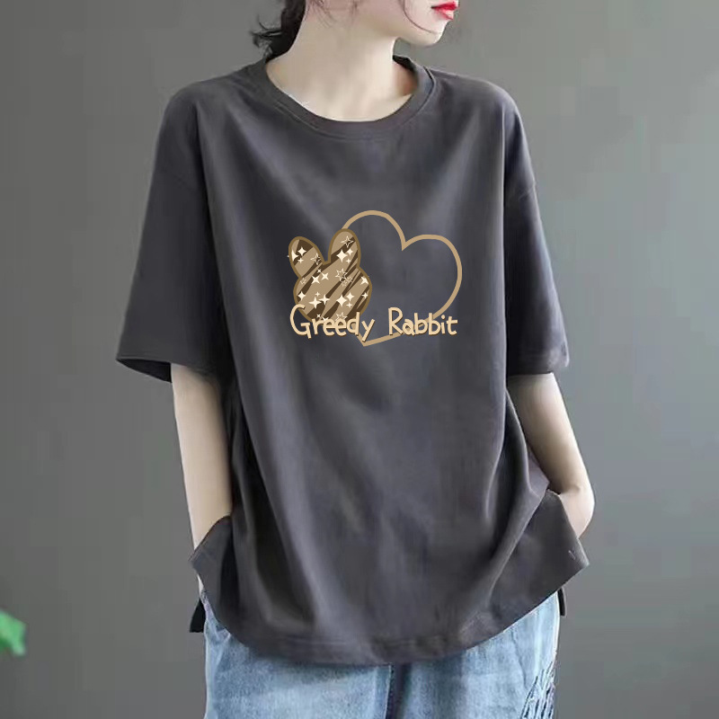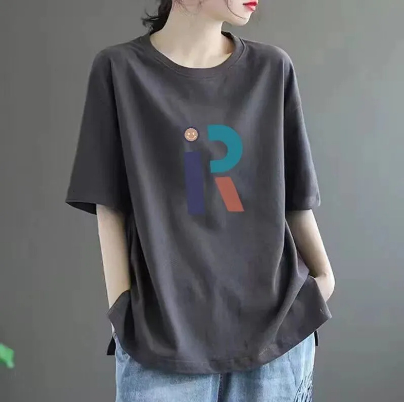 퓨어 코튼 2024 여름 뉴 플러스 사이즈 여성용 티셔츠 반팔 느슨한 통통녀 살을 덮는 고급 슬리밍 탑 인 트렌디