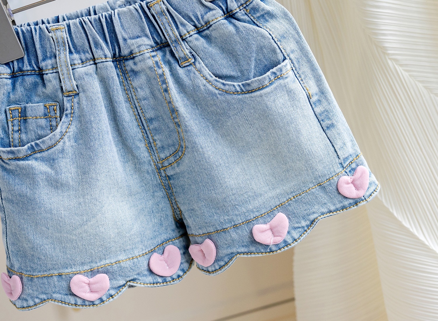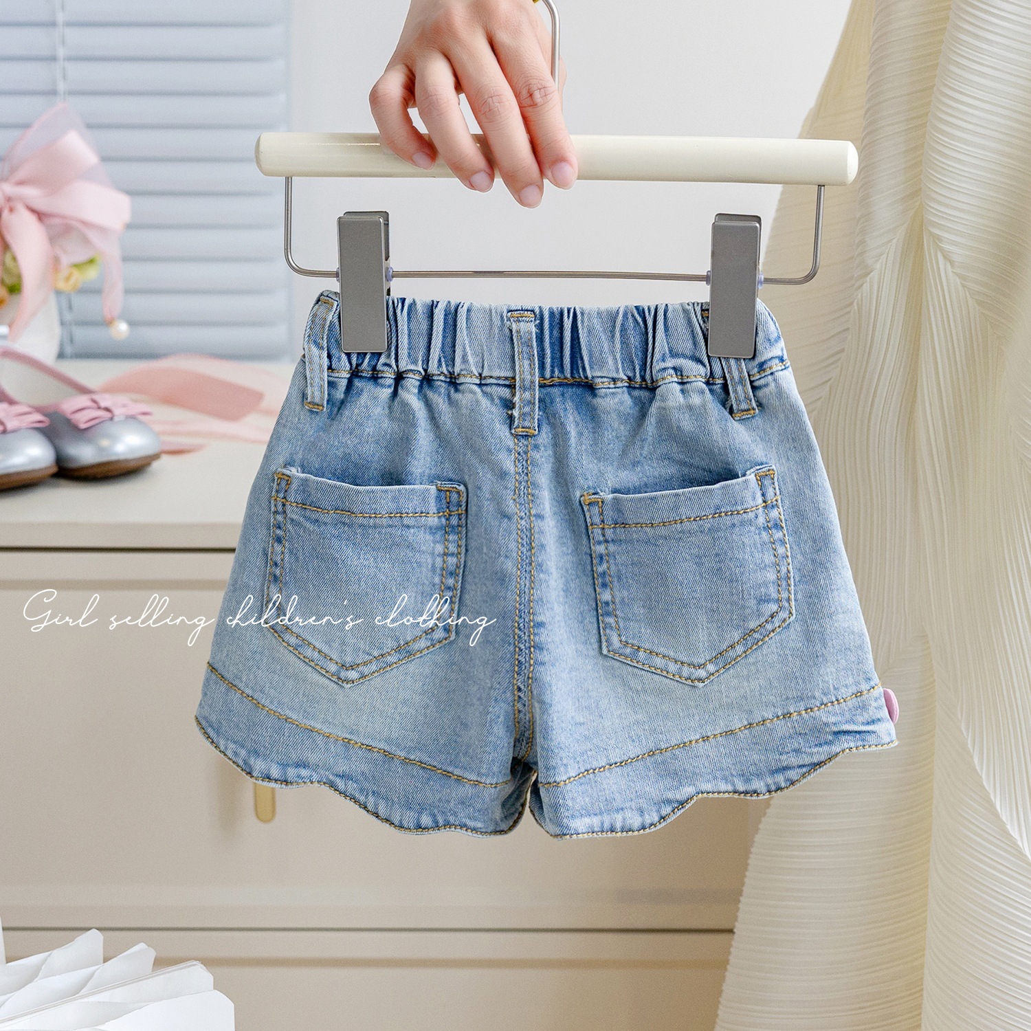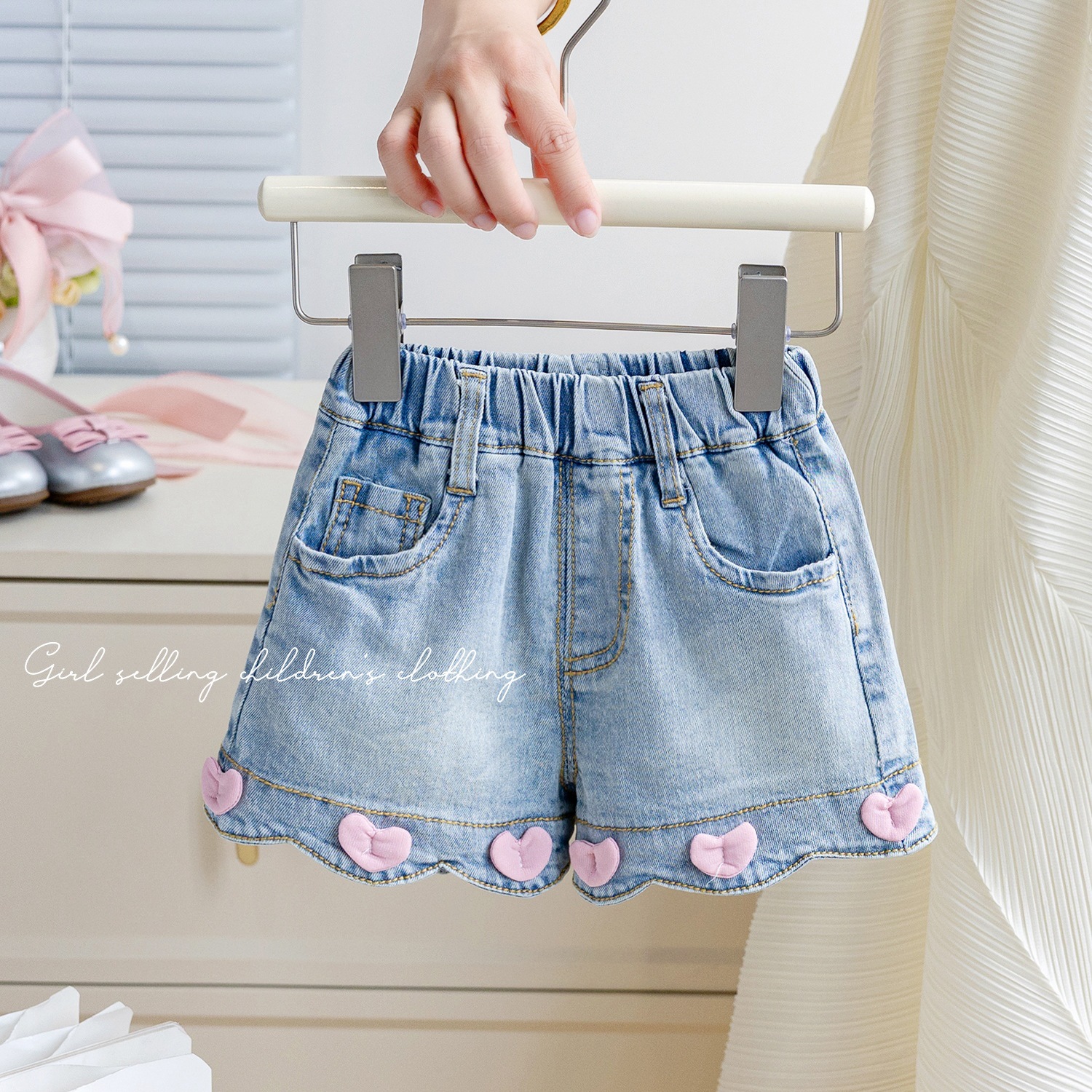 여아 바지 2025 여름 신상 아동용 패셔너블 레이스 데님 팬츠 여아용 다용도 작은 하트 캐주얼 반바지