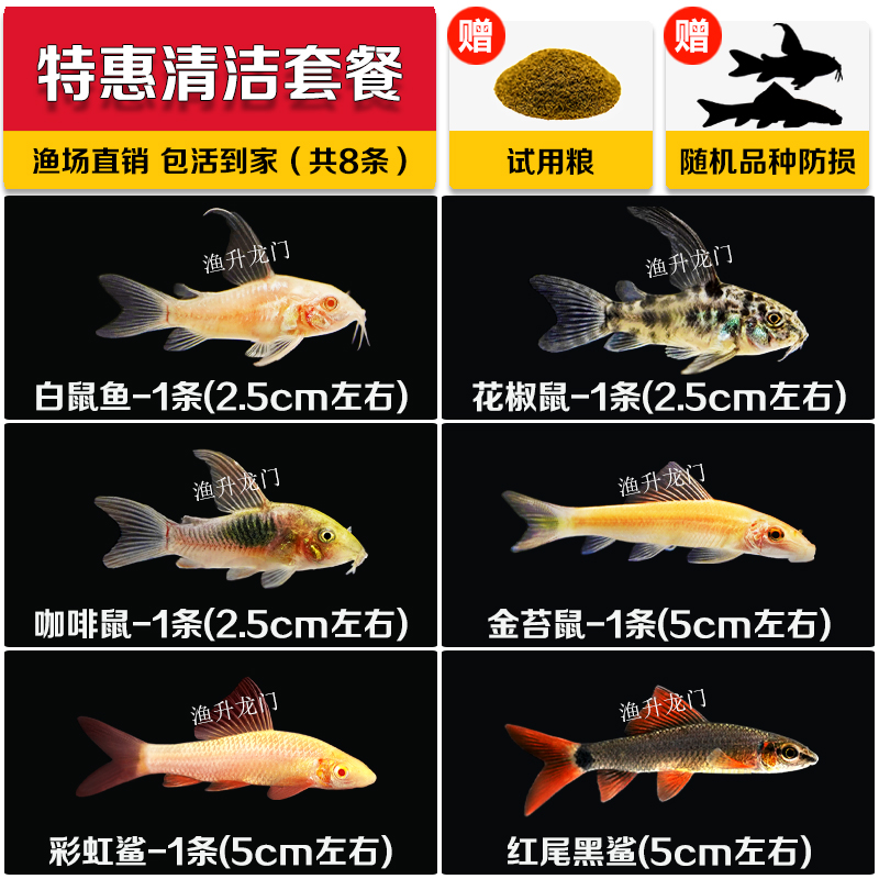 • 8 무작위 쥐 물고기 (손상 예방을 위해 2 개 더)
