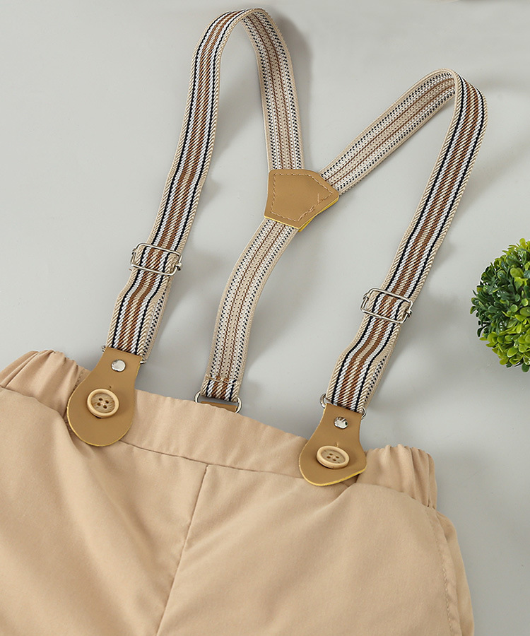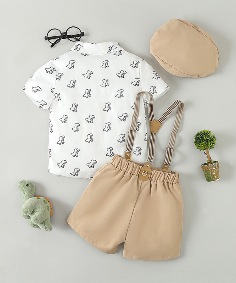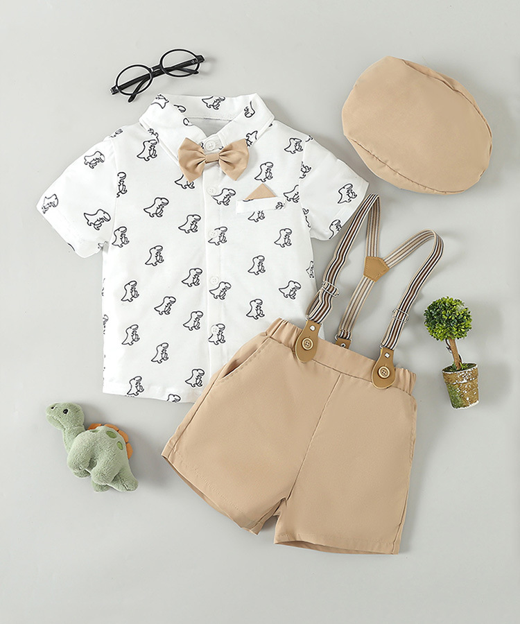 국경 간 어린이 원피스 세트 여름 소년의 셔츠 스트랩 바지 모자 3 피스 아기 영국 스타일 작은 세트
