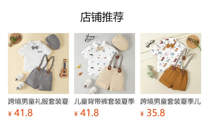 국경 간 어린이 원피스 세트 여름 소년의 셔츠 스트랩 바지 모자 3 피스 아기 영국 스타일 작은 세트스토어 가기