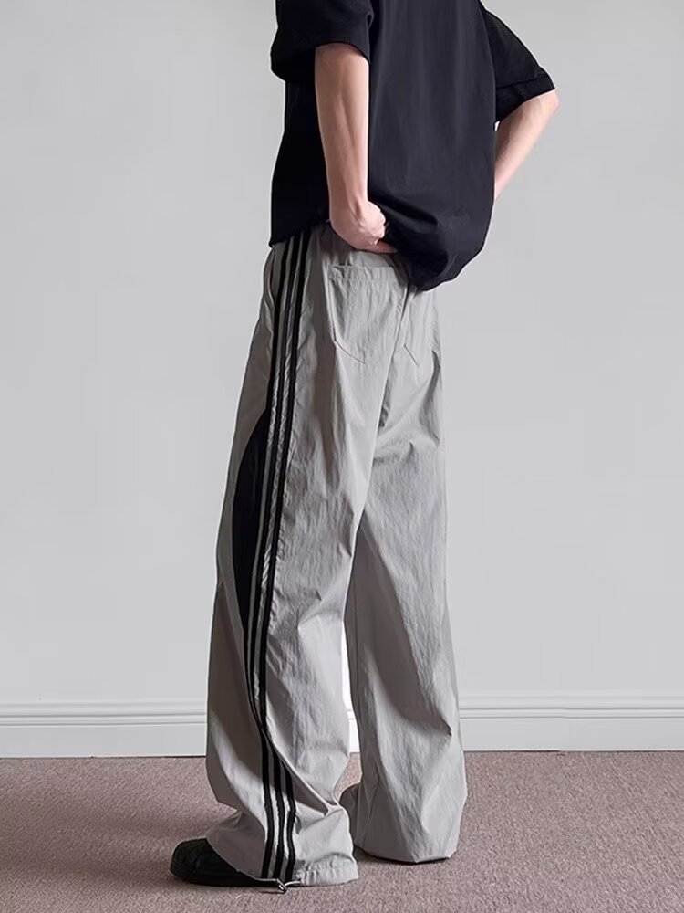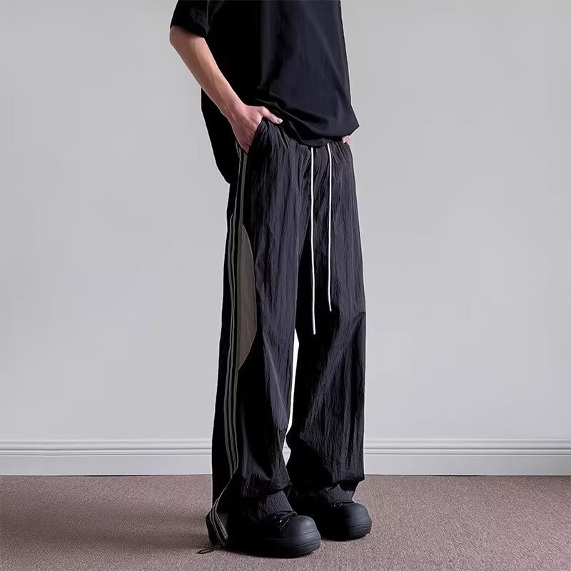 하이 스트리트 캐주얼 바지 남성 청소년 인기 하라주쿠 미드 허리 풀링 올매치 유행 유행 브랜드 3 바 바느질 바지