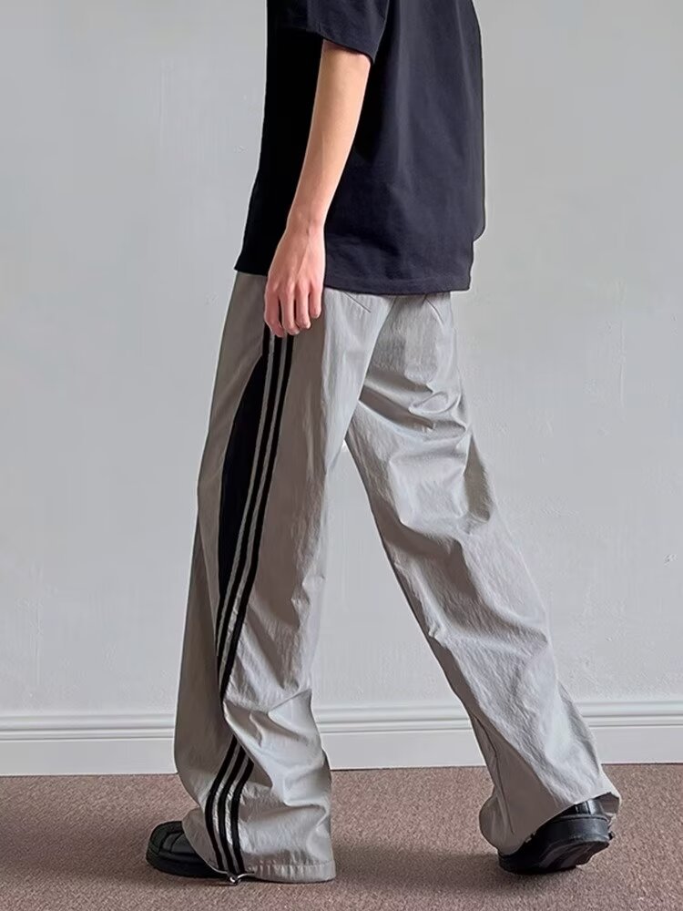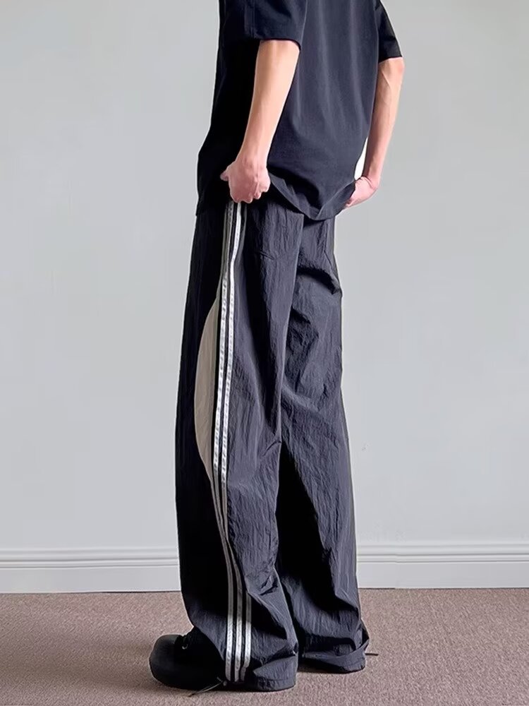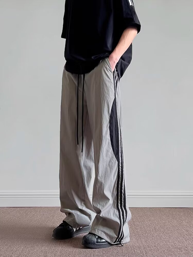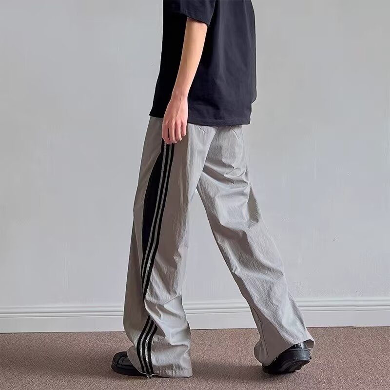 하이 스트리트 캐주얼 바지 남성 청소년 인기 하라주쿠 미드 허리 풀링 올매치 유행 유행 브랜드 3 바 바느질 바지스토어 가기