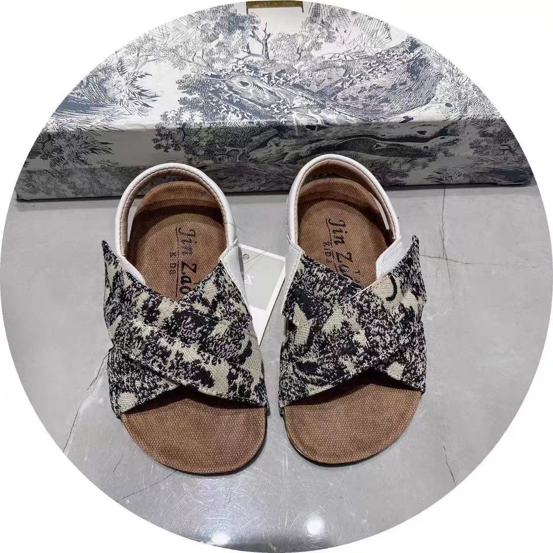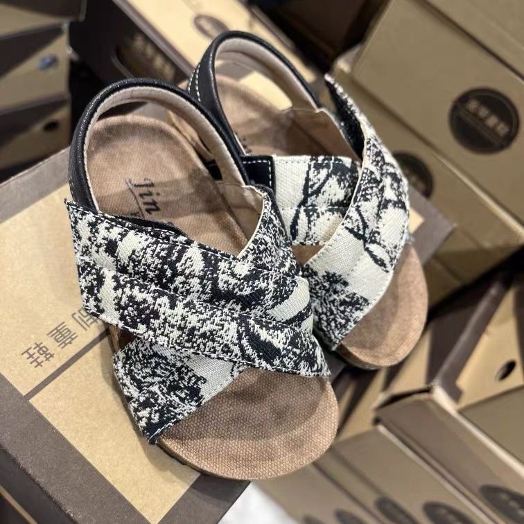 2024 년 여름 소녀 Houndstooth 샌들 한 신발 두 착용 매일 해변 캐주얼 고무 거리 신발스토어 가기
