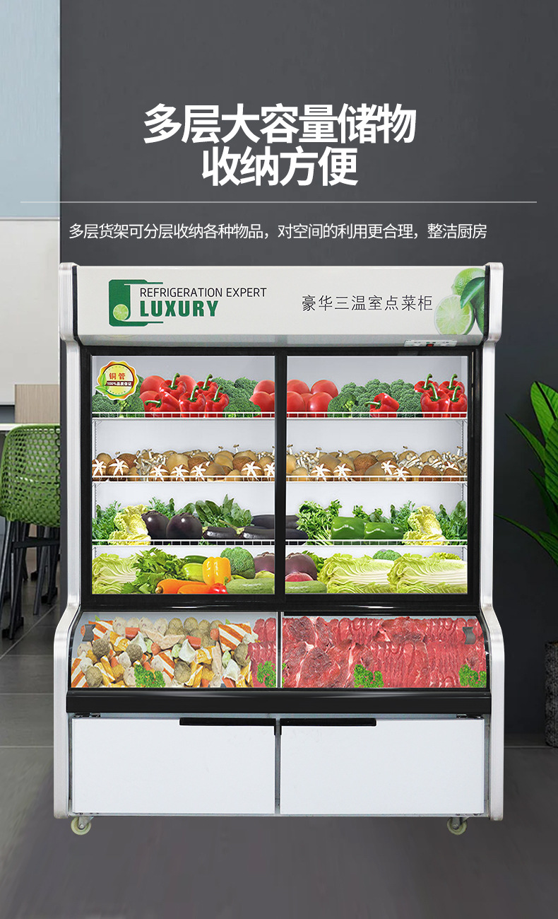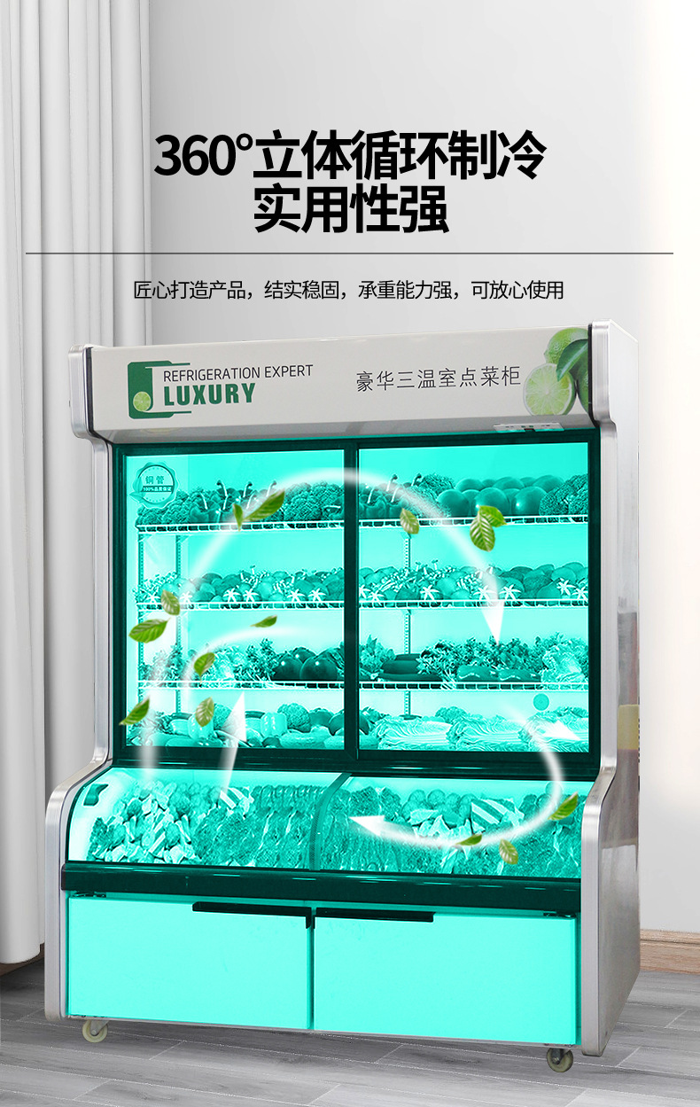 일품 캐비닛 3 온도 다층 대용량 일품 캐비닛 360 3 차원 순환 냉동 말라 탕 문자열 보존 캐비닛