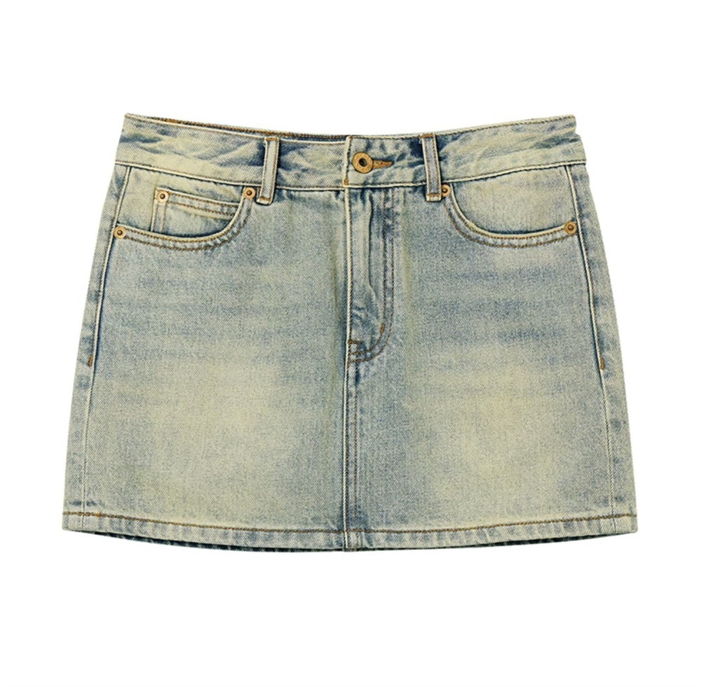 빈티지 아픈 씻은 미니 스커트 스트레이트 낮은 허리 데님 스커트 여성의 노란색 진흙 색상