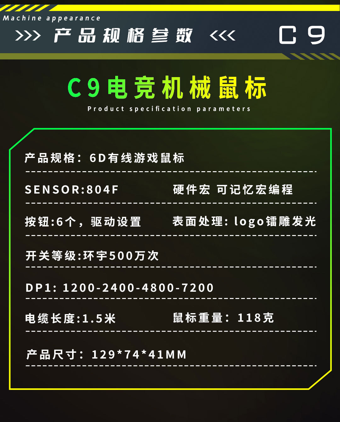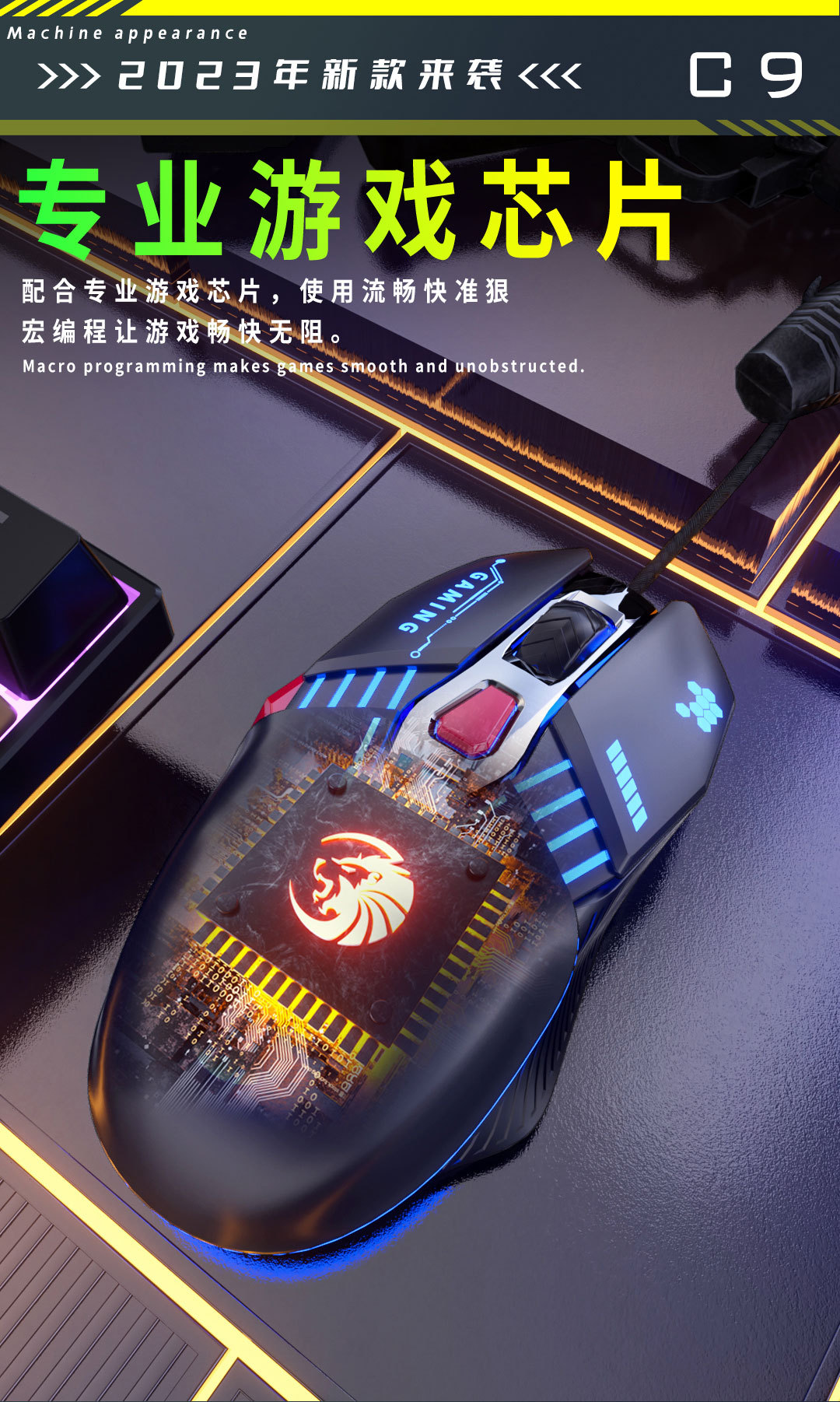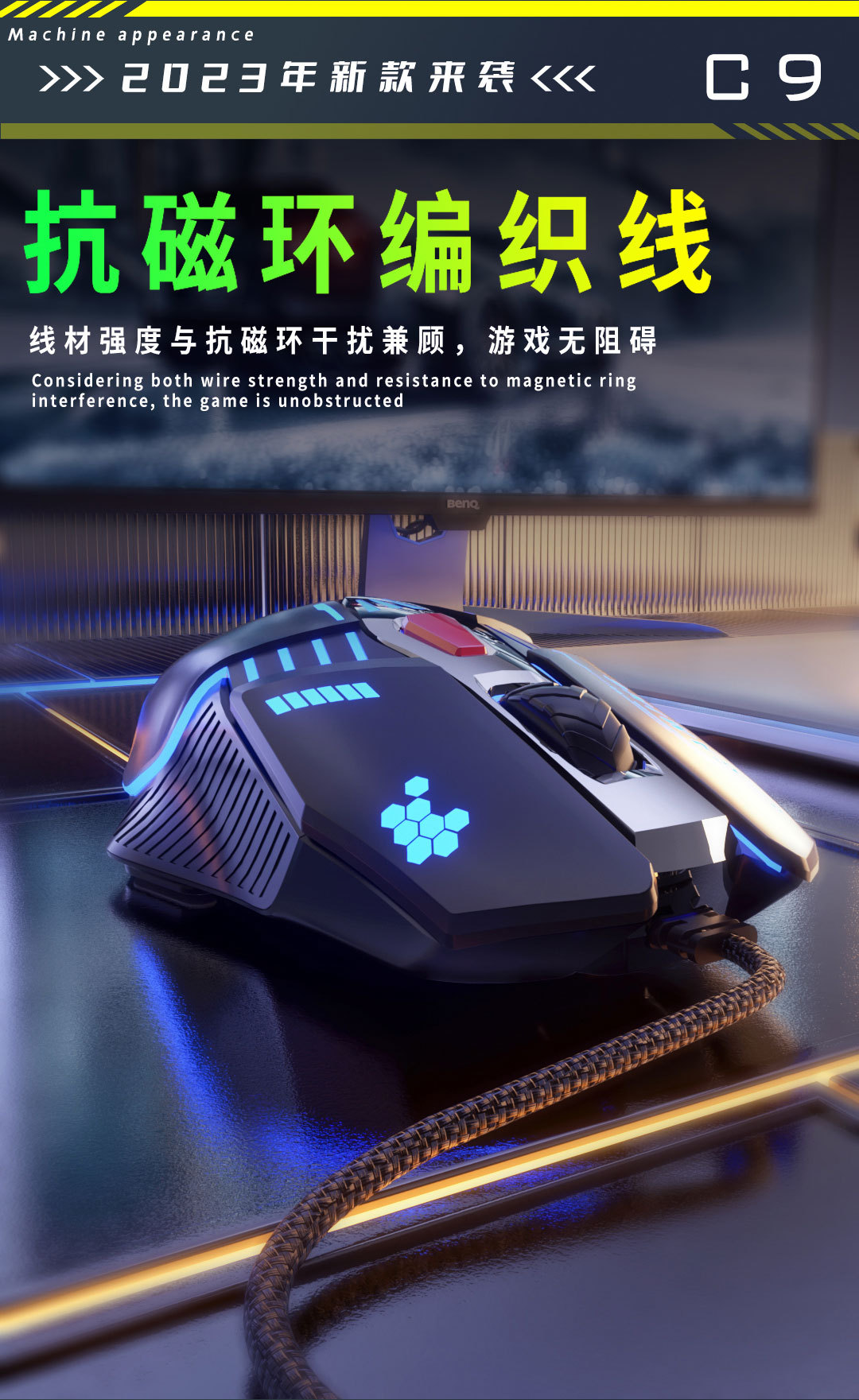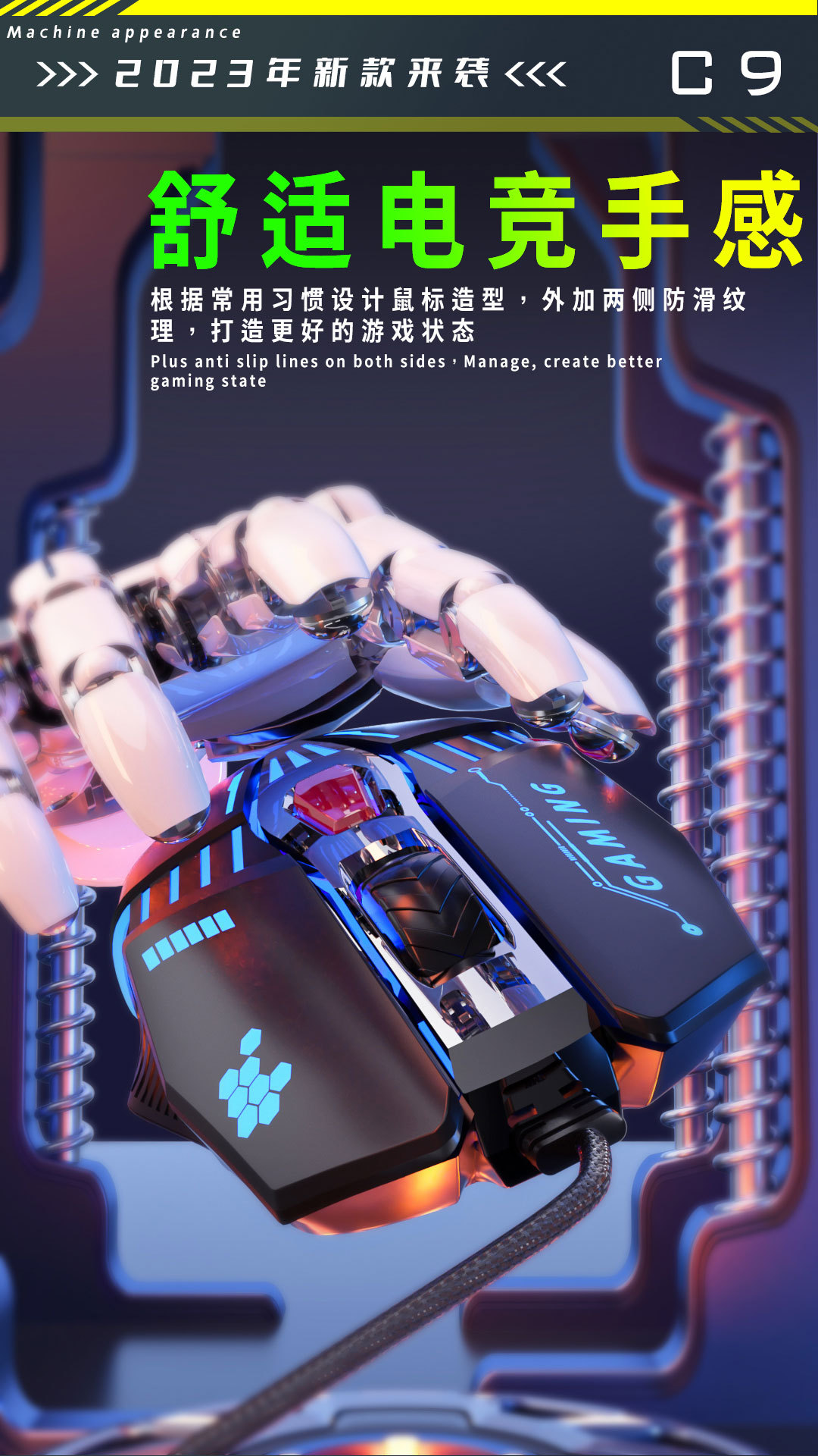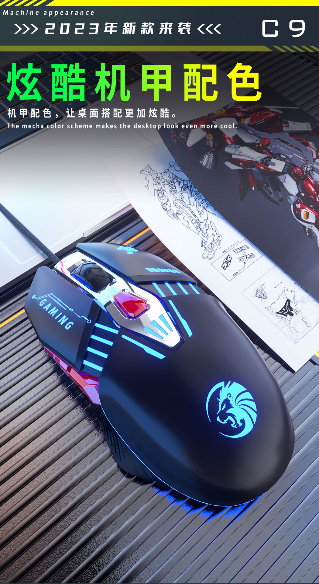 C9 메카 게임 발광 유선 마우스 하드웨어 매크로 데스크탑 컴퓨터 노트북 게임 e스포츠 사무용 범용