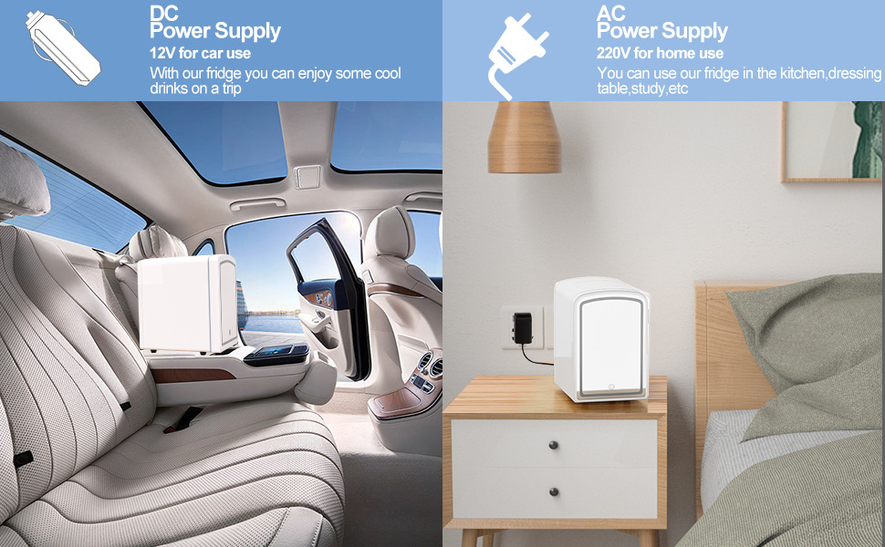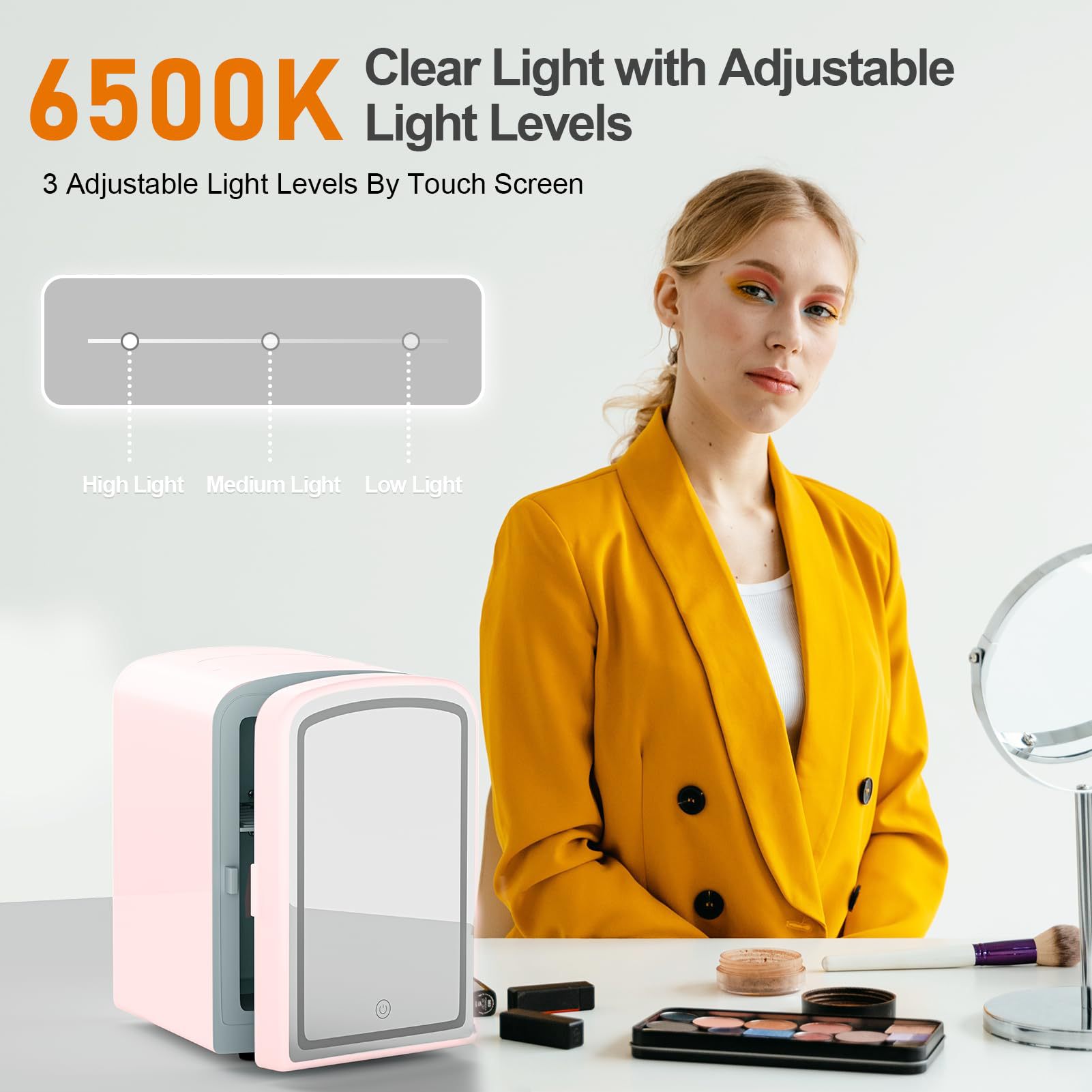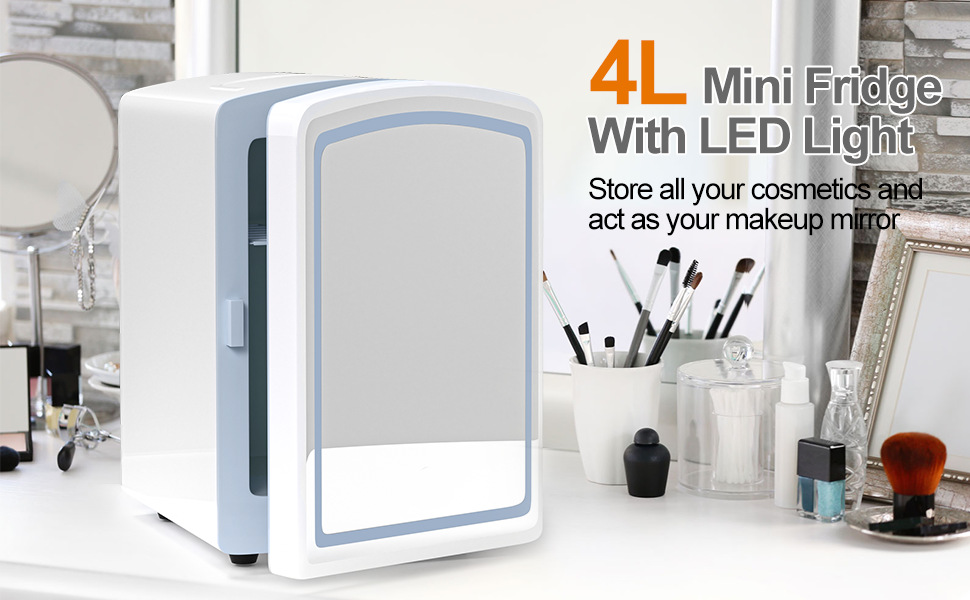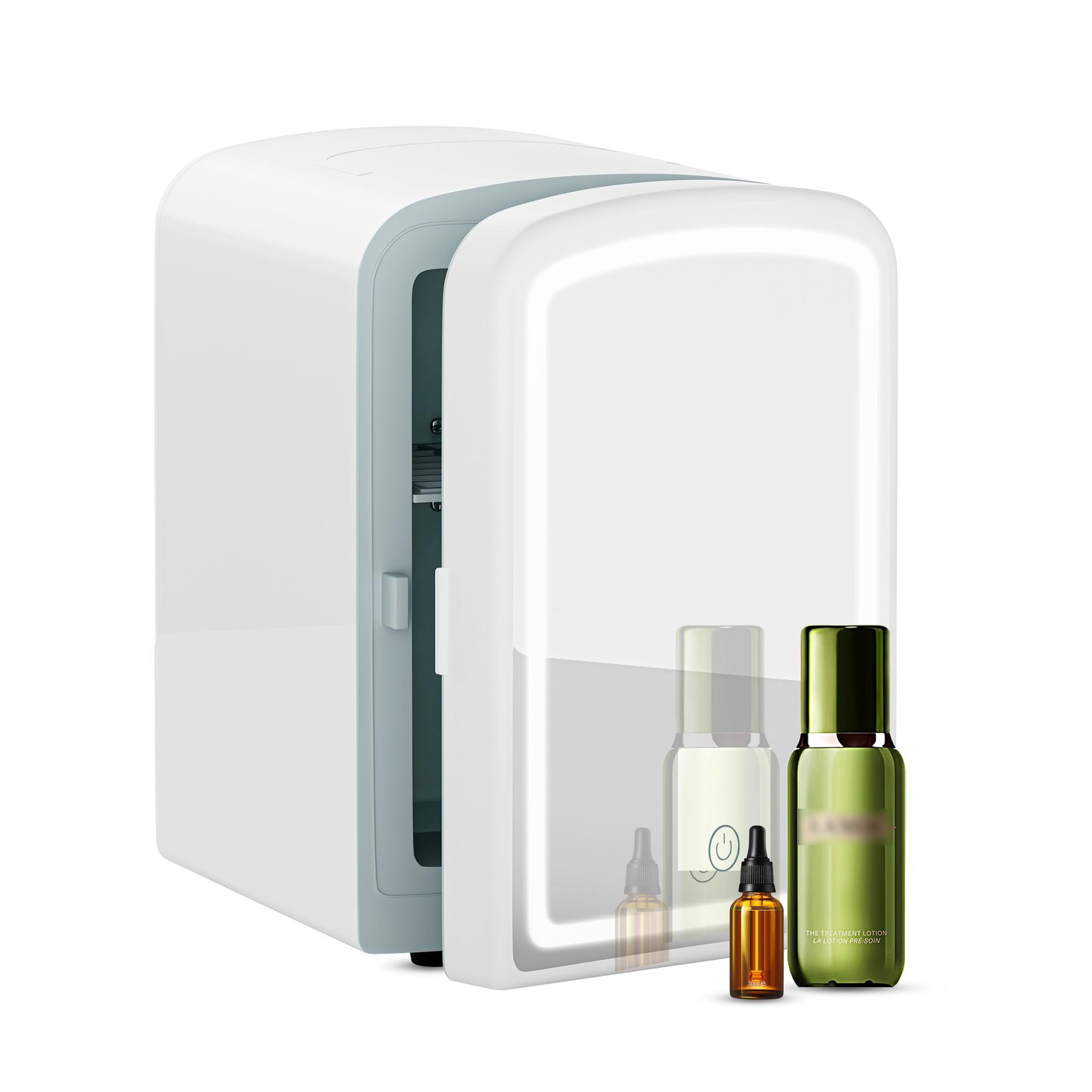 휴대용 미니 냉장고 디믹한 LED 거울 뜨거운 차가운 아름다움 냉장고 화장품 자동차 가정용 미니 냉장고