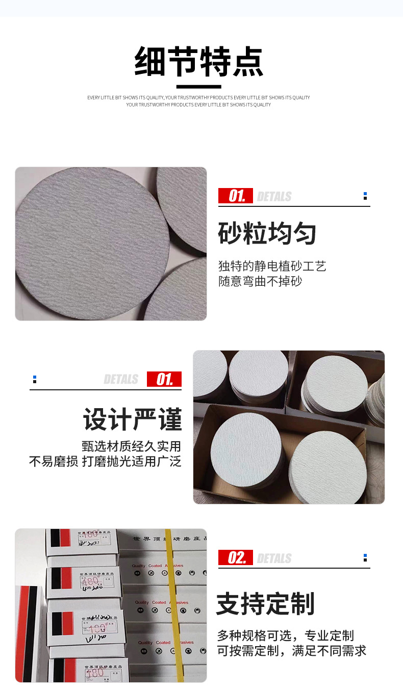 4 인치 하얀 모래 모듬 사포 조각 솔질 조각 고급 샌딩 사포 디스크 사포 양면 접착 종이 흰색 사포 도매