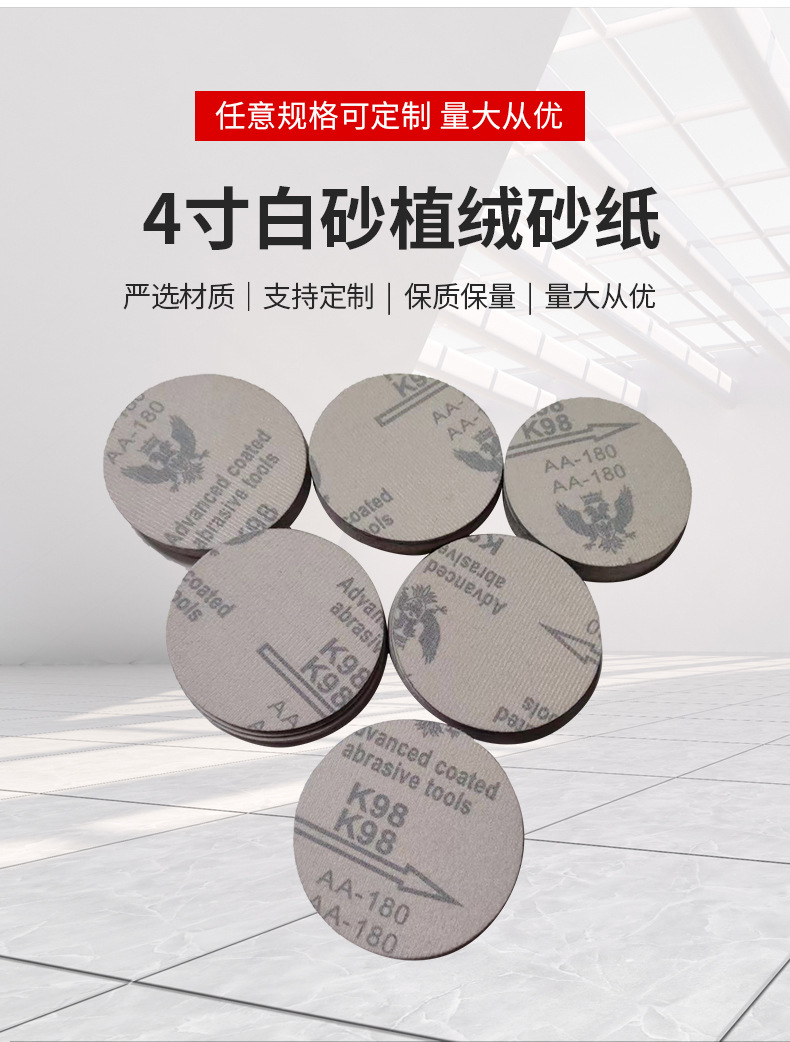 4 인치 하얀 모래 모듬 사포 조각 솔질 조각 고급 샌딩 사포 디스크 사포 양면 접착 종이 흰색 사포 도매스토어 가기