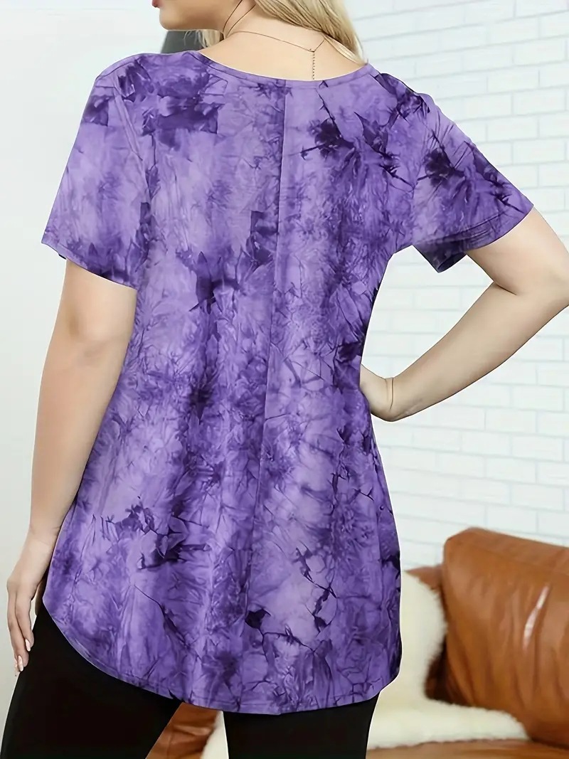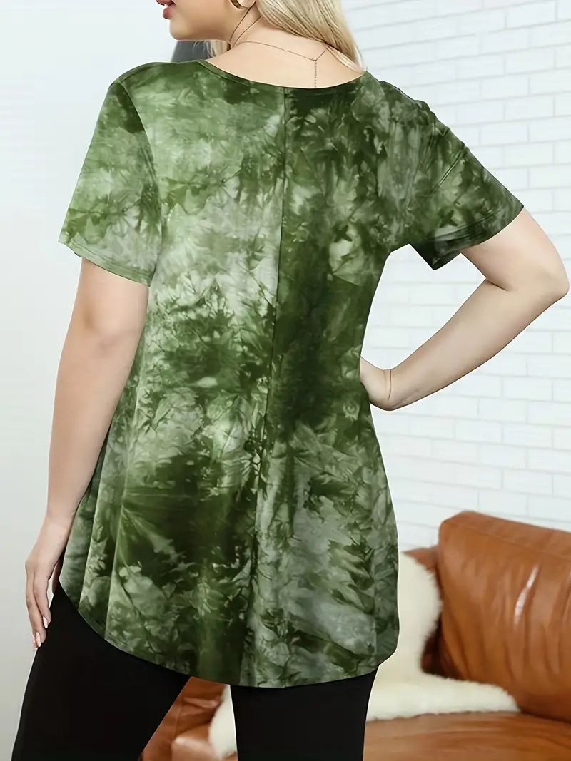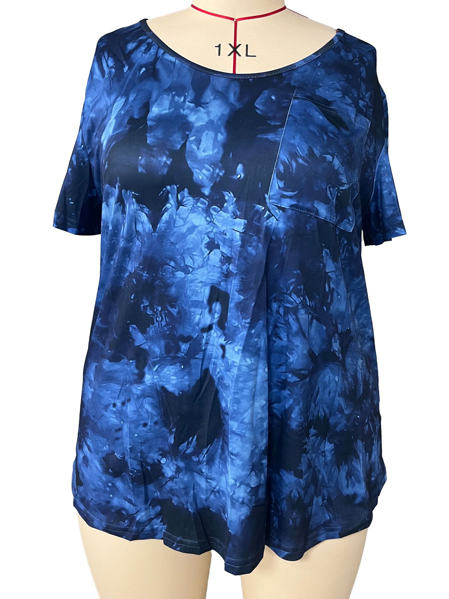 2025 Amazon 크로스보더 여름 패션 V 넥타이 포켓 타이 염색 플러스 사이즈 여성 티셔츠 포켓이 있는 반팔 탑스토어 가기