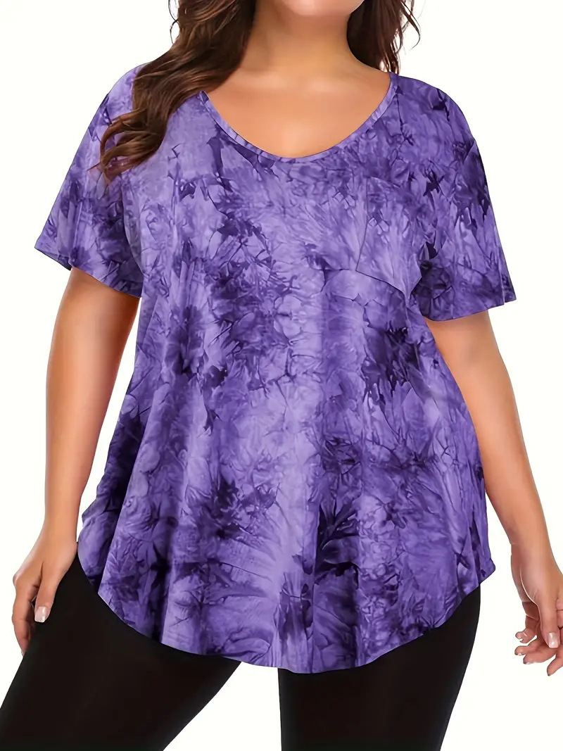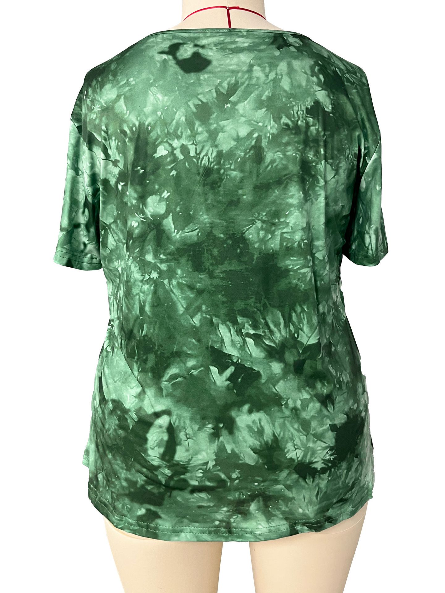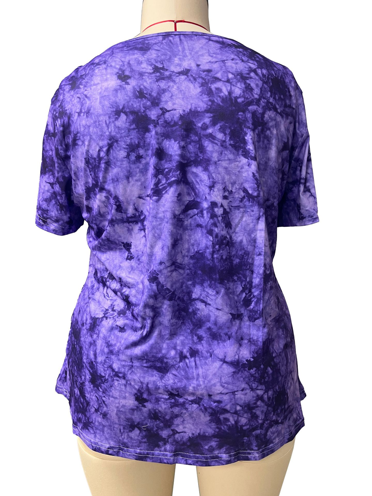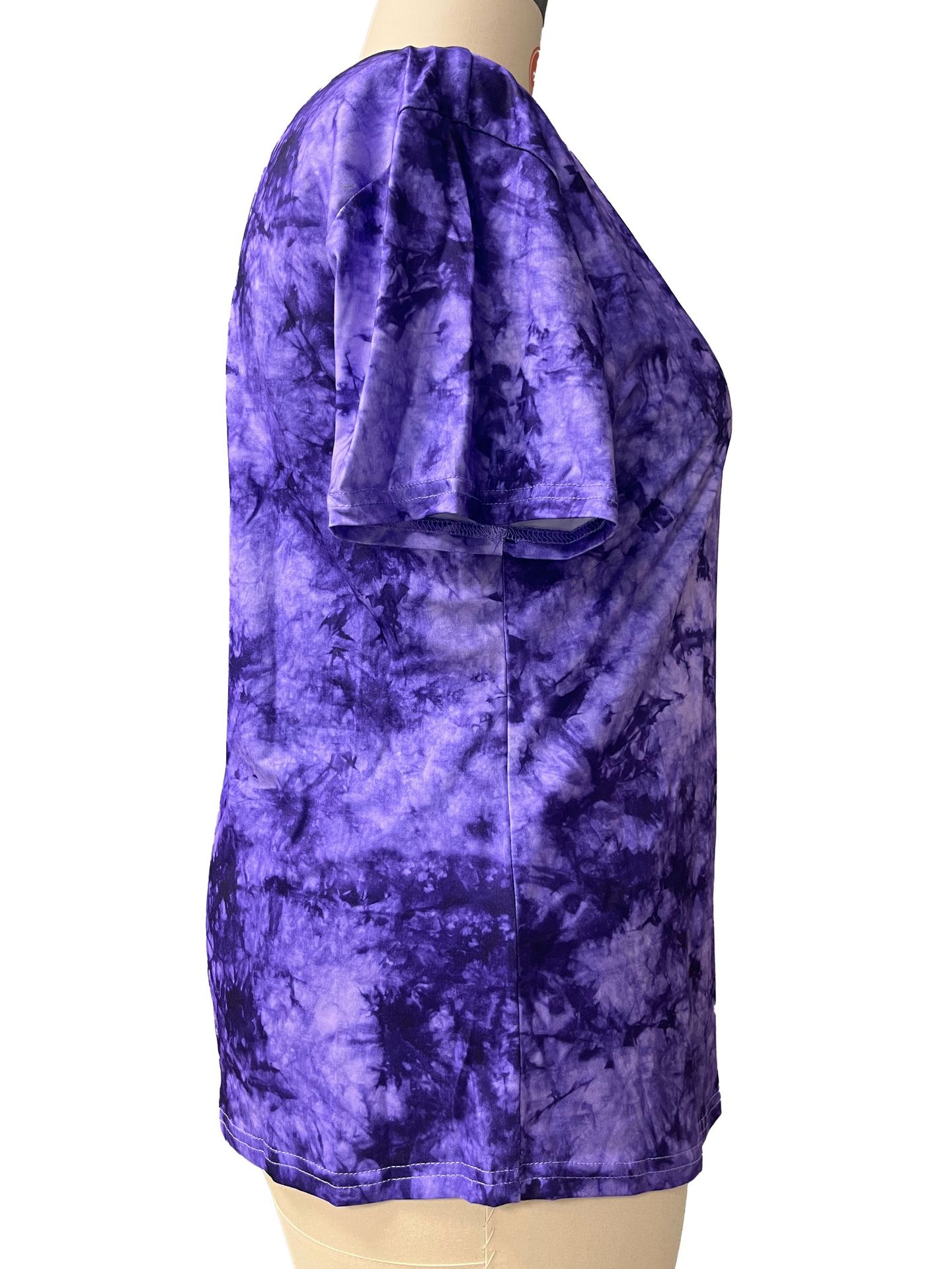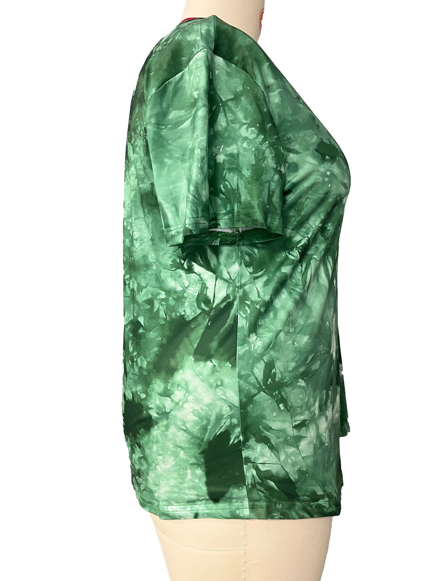 2025 Amazon 크로스보더 여름 패션 V 넥타이 포켓 타이 염색 플러스 사이즈 여성 티셔츠 포켓이 있는 반팔 탑