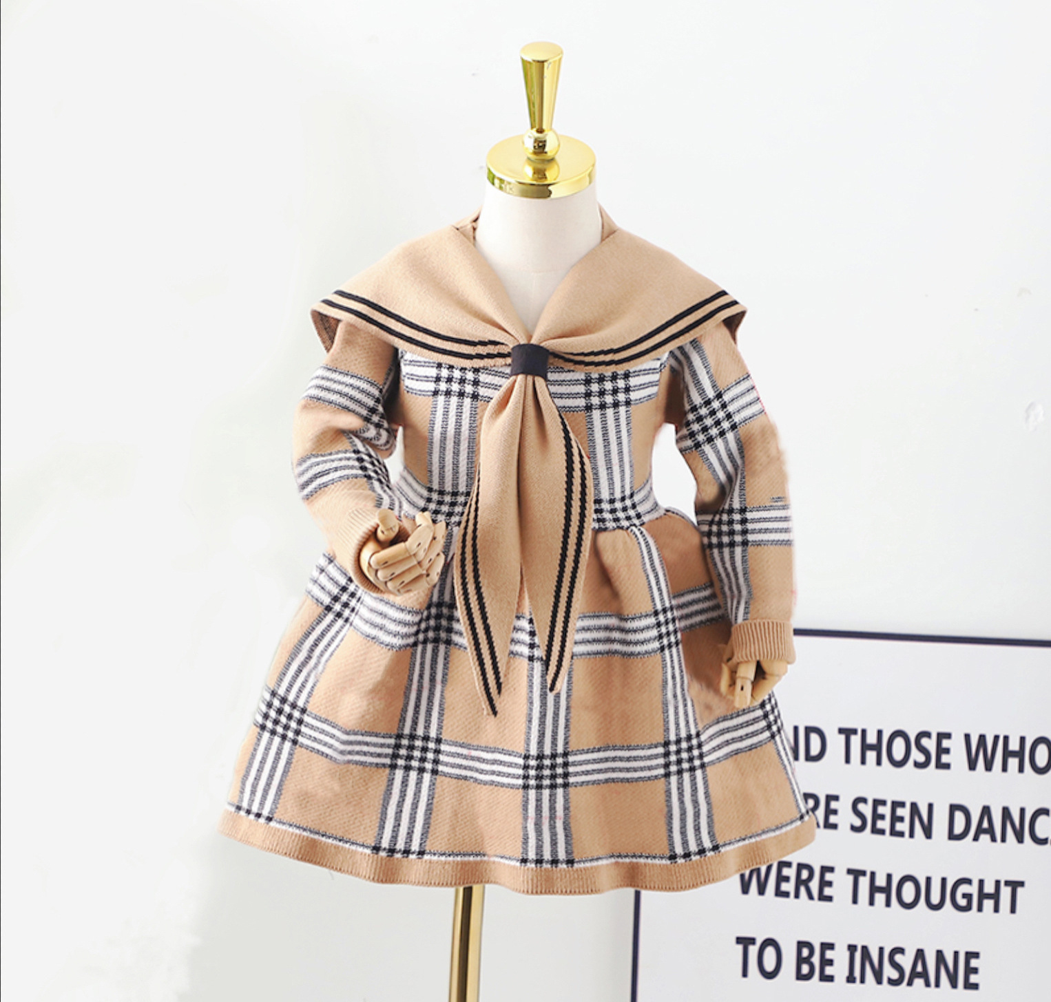 대외 무역 아동복 공장 2024 새로운 소녀 한국 스타일 봄과 가을 새로운 대학 바람 코트 칼라 니트 원피스스토어 가기