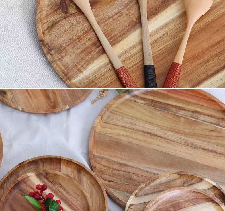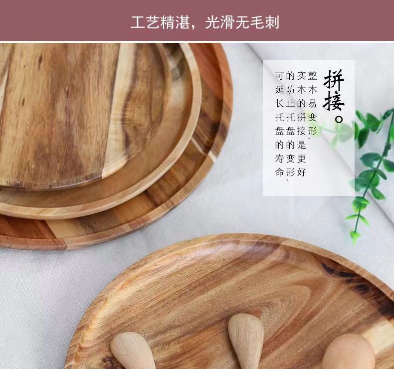 나무 아카시아 나무 트레이 라운드 가정용 간단한 말린 과일 트레이 크리 에이 티브 빵 단단한 나무 트레이 일본식 스토리지 트레이
