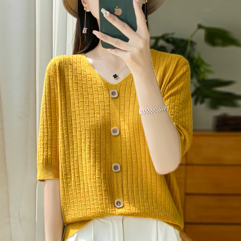 도매 여름 여성의 니트 짧은 소매 Andy Velvet V-Neck 도시 캐주얼 쿨 트렌디 우아한 루즈 탑 재킷스토어 가기