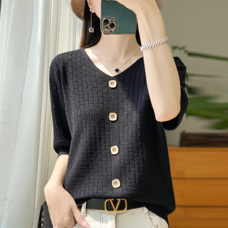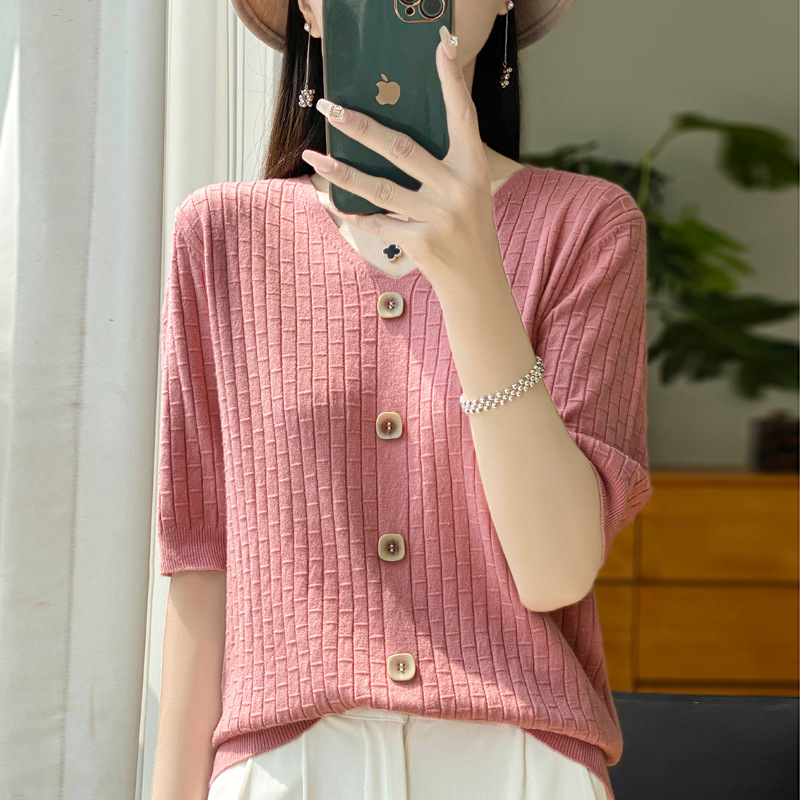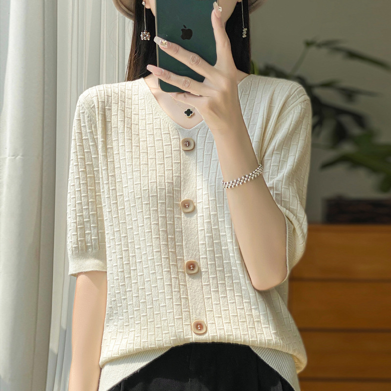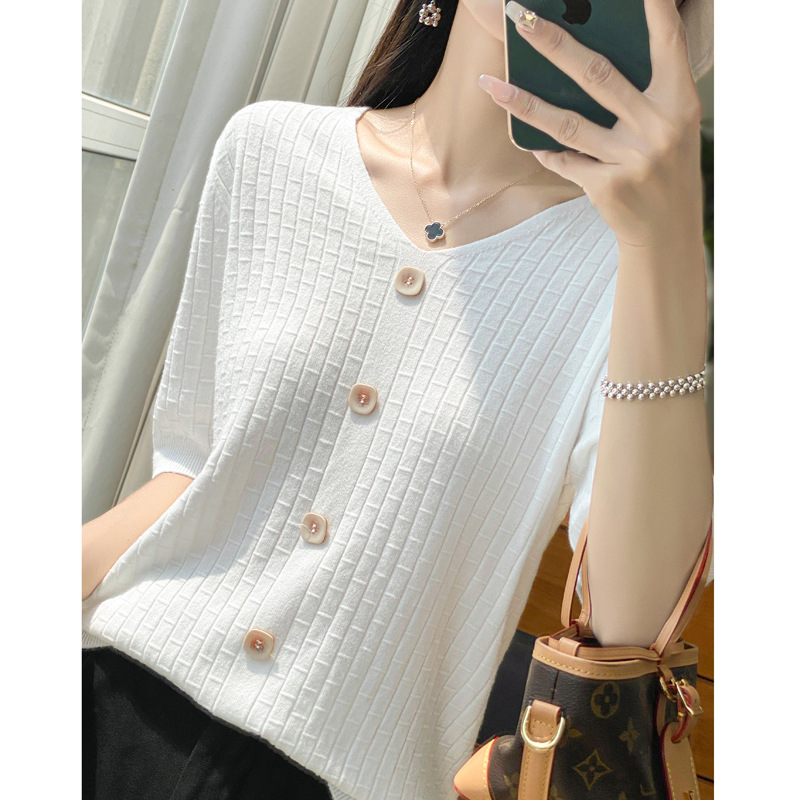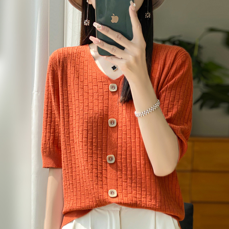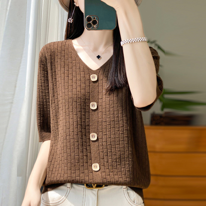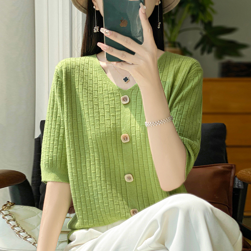 도매 여름 여성의 니트 짧은 소매 Andy Velvet V-Neck 도시 캐주얼 쿨 트렌디 우아한 루즈 탑 재킷