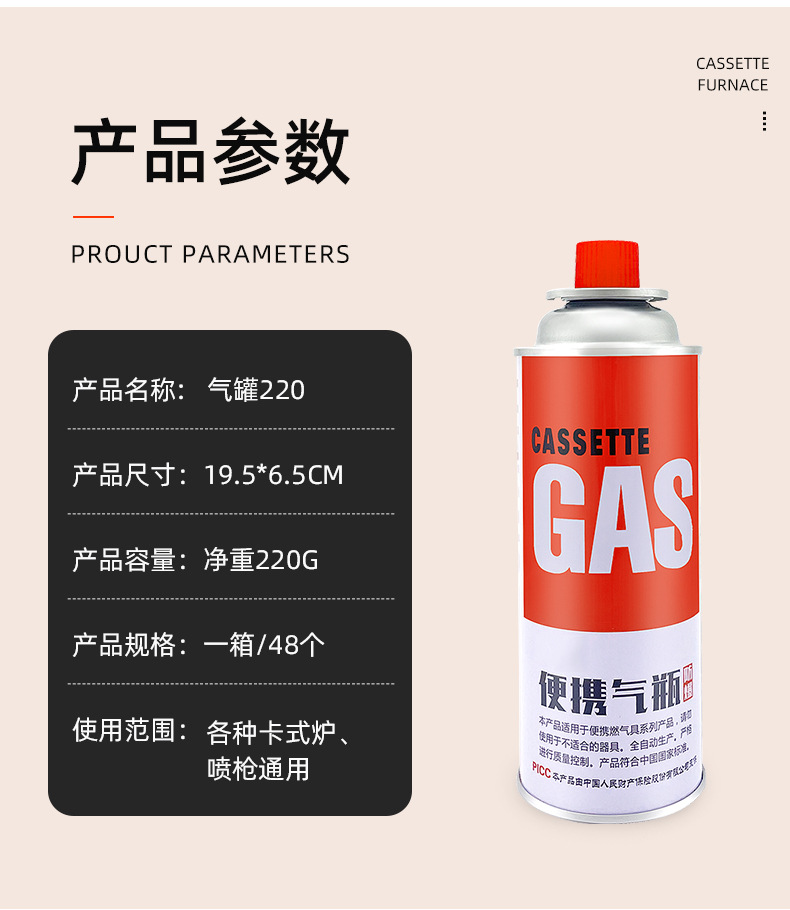 야외 휴대용 카세트 가스통 캠핑 방폭 범용 가스레인지 카세트 가스통 부탄 가스통 220g