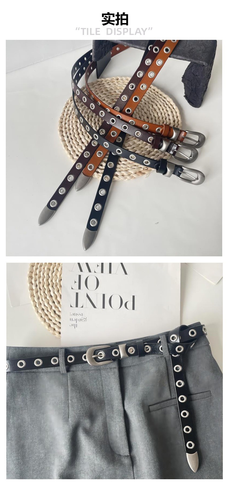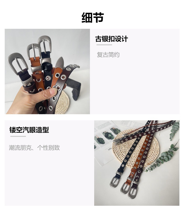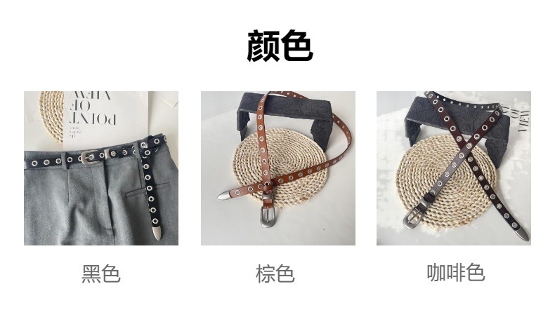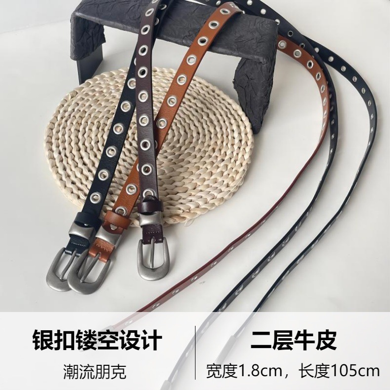 유럽과 미국의 펑크 스타일 메탈 할로우 벨트 여자 올 매치 실버 핀 버클 매칭 청바지 핸섬 학생 펀치 프리 벨트