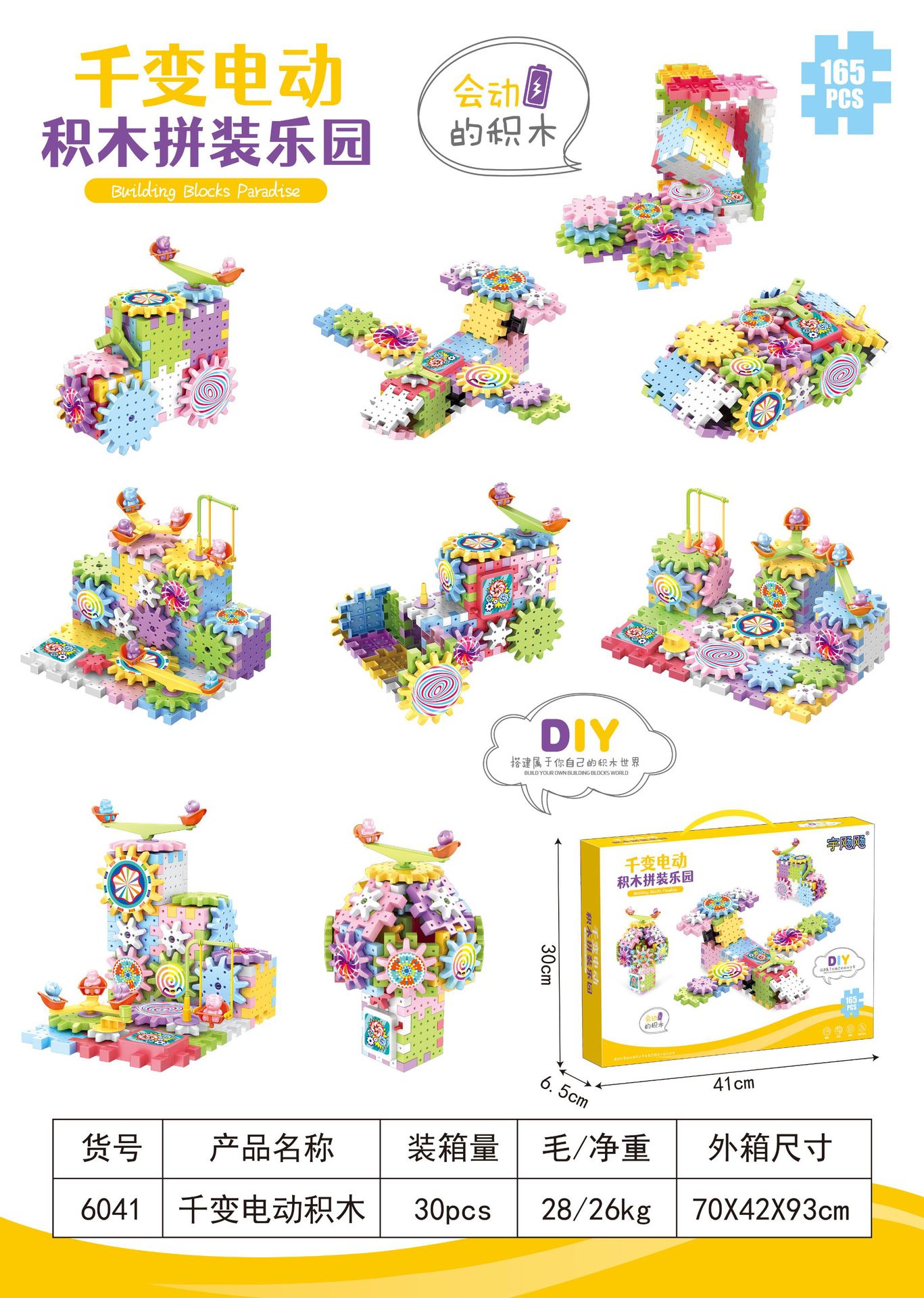 다양한 건물 블록 전기 파라다이스 기어 회전 장난감 조립 대형 입자 건물 블록 어린이 교육 창조적 인 선물